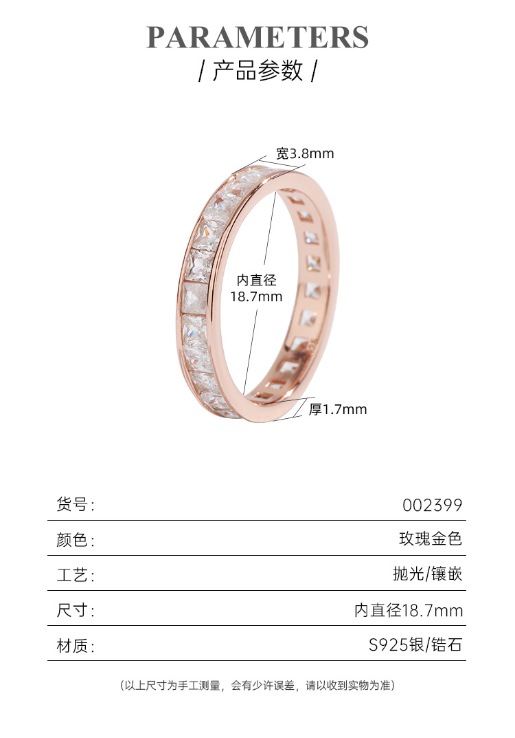 | Color | Anillo de oro rosa cuerpo completo plata 925 |