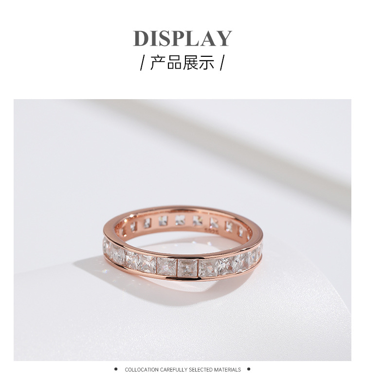Anillo de diamantes de oro rosa anillo femenino 925 plata esterlina nicho diseño 2023 nuevo Anillo de dedo índice cuadrado diamante completo anillo de diamantes