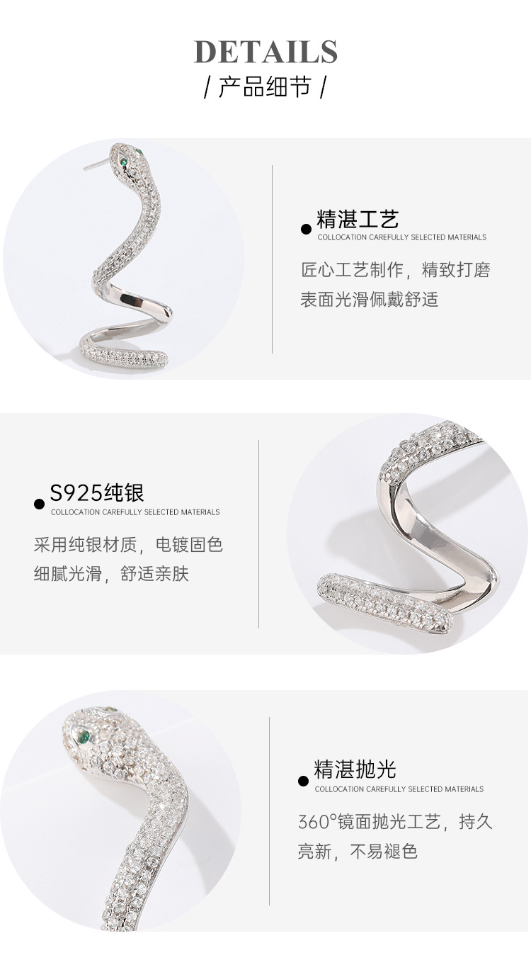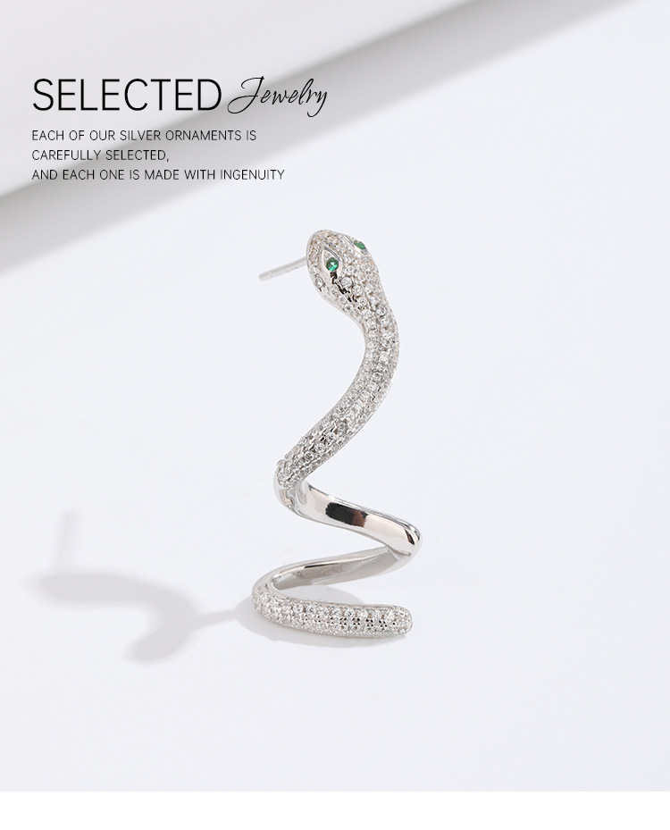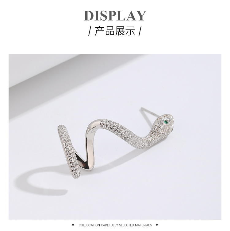 Pendientes en forma de serpiente de diamantes de mujer Pendientes de Plata de Ley 925 pendientes individuales de moda 2024 nuevos pendientes de alto grado de nicho