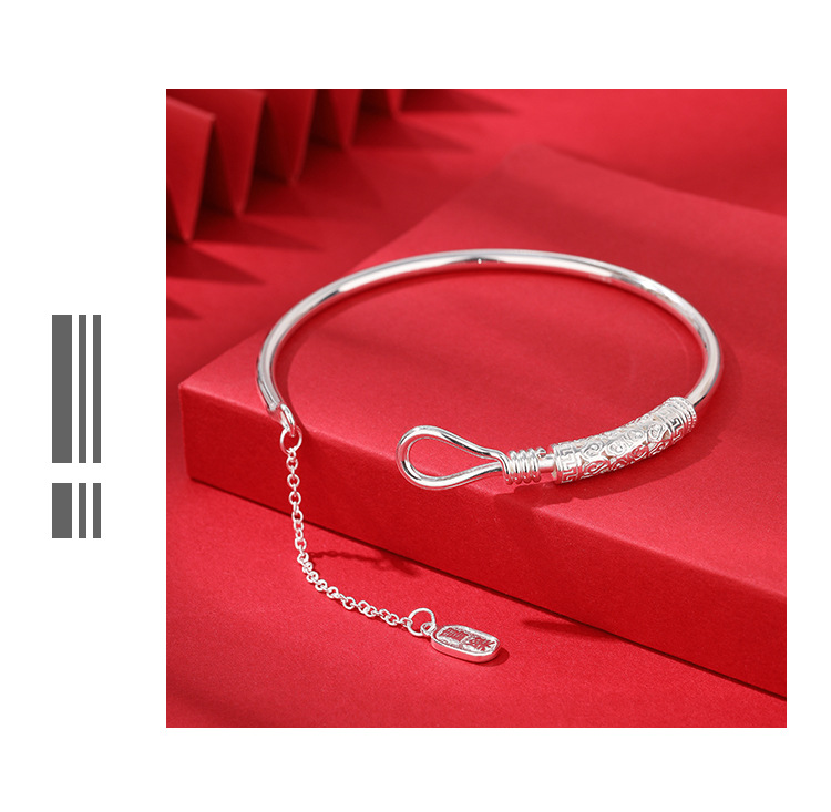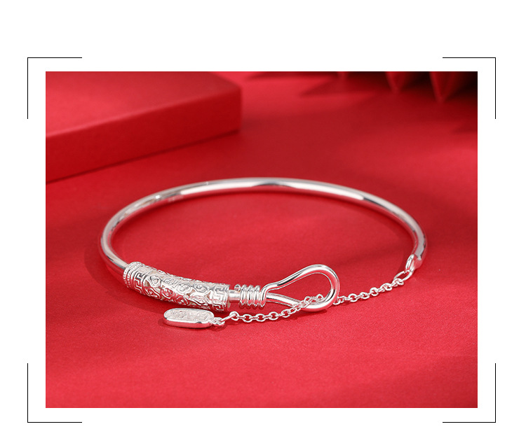 Ping un XI le xiangyun pulsera de plata esterlina mujer 999 plata pura pulsera de plata sólida estilo nacional regalo para novia