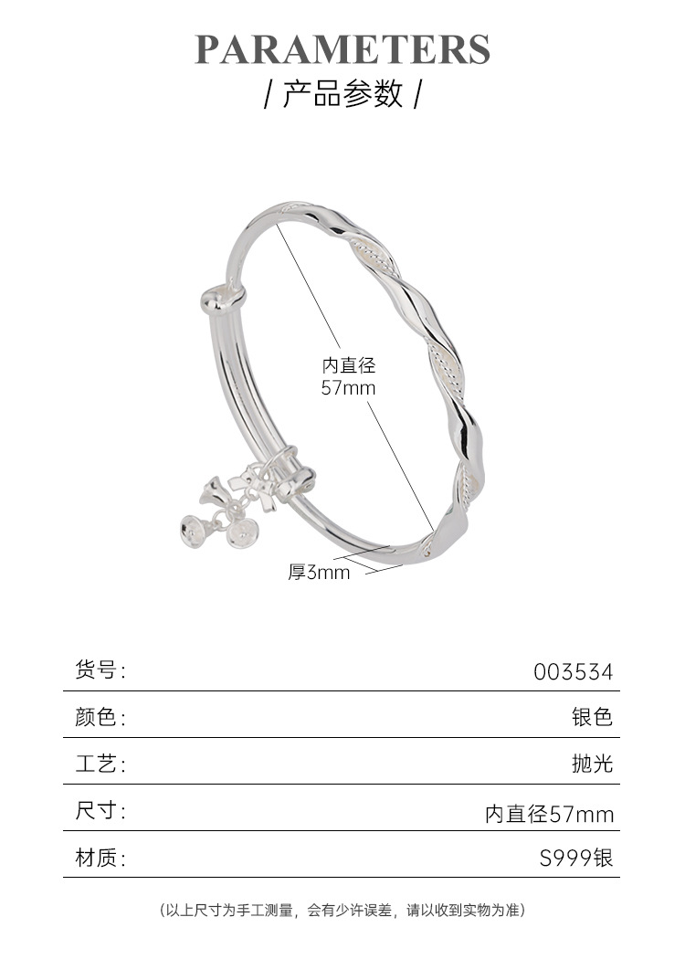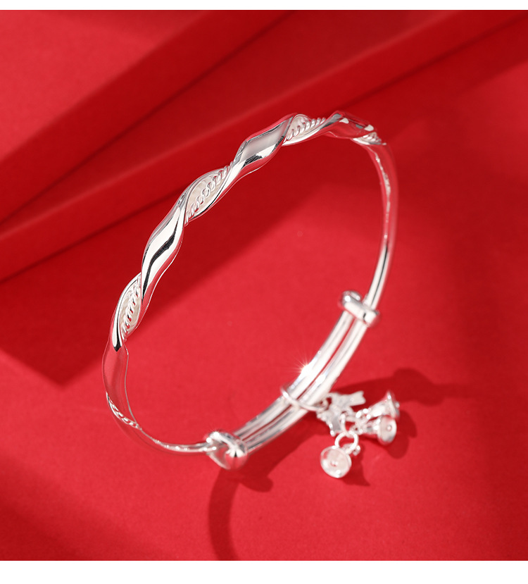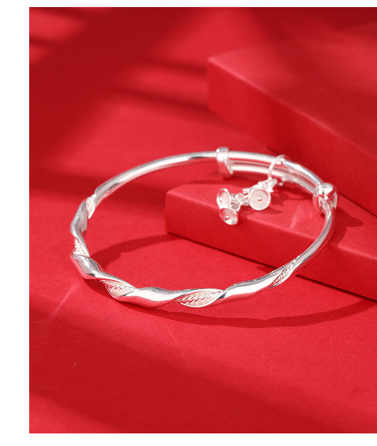 999 plata esterlina orquídea pulsera de plata hembra Campana de cáñamo patrón Push-Pull sólido joven nicho diseño pulsera de plata pura