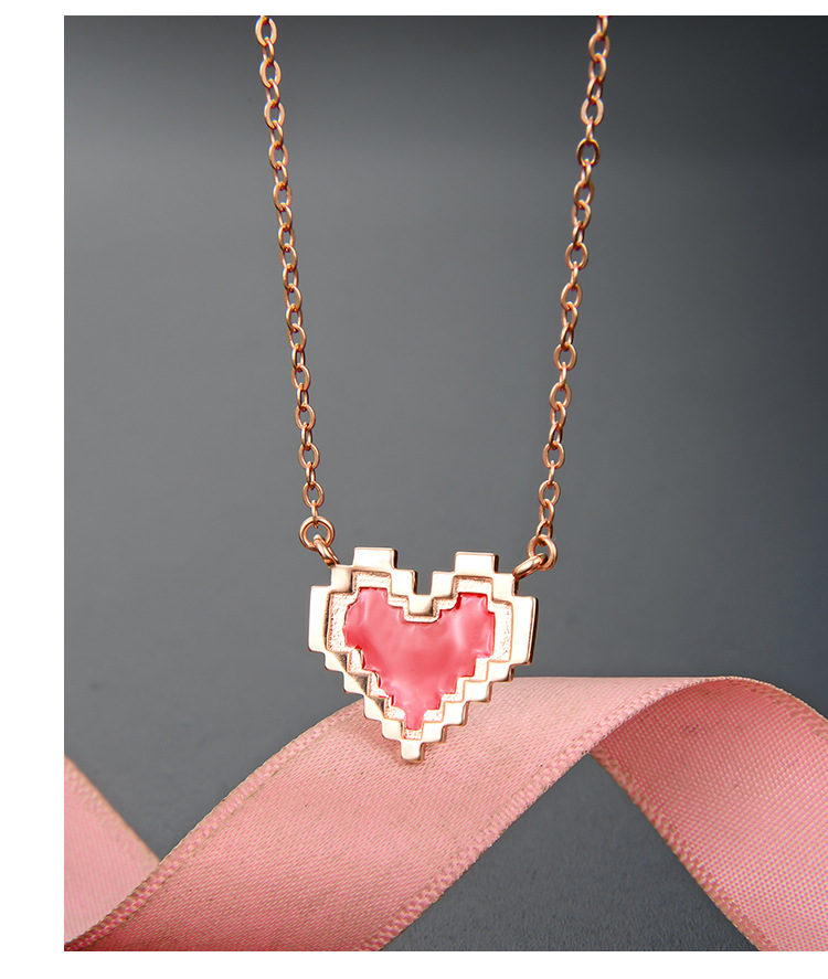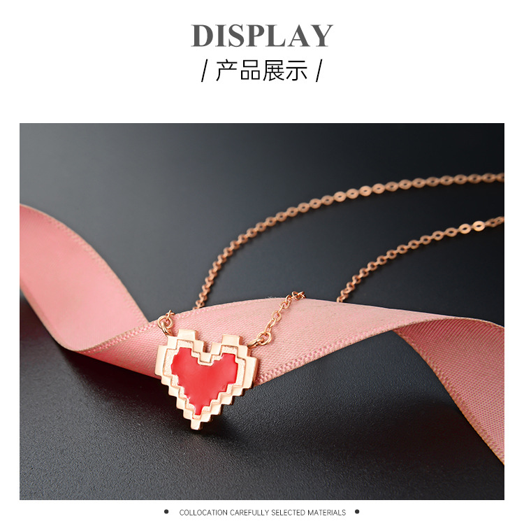 Mosaico rojo collar de amor para las mujeres 925 plata esterlina simple nicho diseño melocotón corazón Luz de lujo de alta calidad Cadena de clavícula