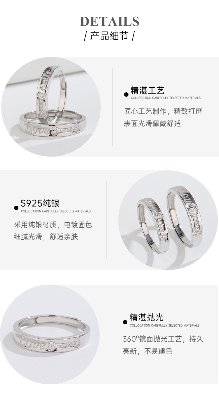Anillo de pareja anillo de pareja de plata esterlina anillo de moda de diseño de nicho abierto regalo de San Valentín para novia