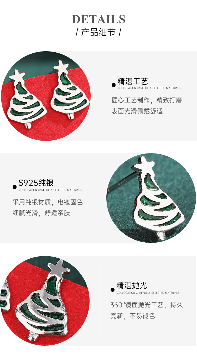 Pendientes de árbol de Navidad 925 plata esterlina diseño de nicho de alto grado 2023 nuevos pendientes de otoño e invierno pendientes de Año Nuevo para mujeres