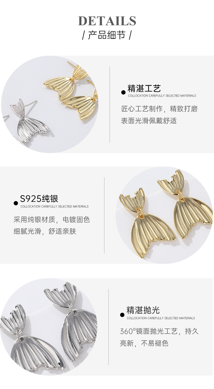 925 pendientes de cola de pez de plata esterlina nicho femenino diseño de alto grado 2023 nuevos pendientes populares pendientes de temperamento simple