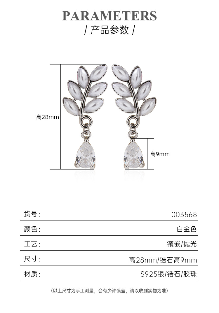 | Color | Pendientes de oreja de trigo gota de agua-con tapones de plástico |