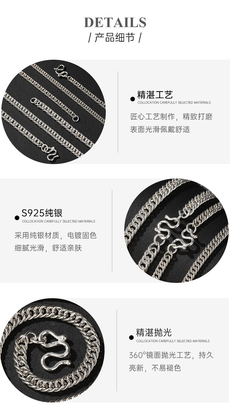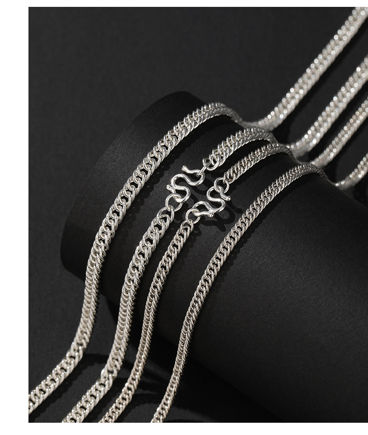 S925 collar de cadena de látigo de plata de ley cadena de clavícula de moda masculina cadena de plata femenina personalidad hip-hop hombre grueso cubano cadena