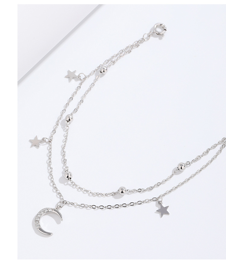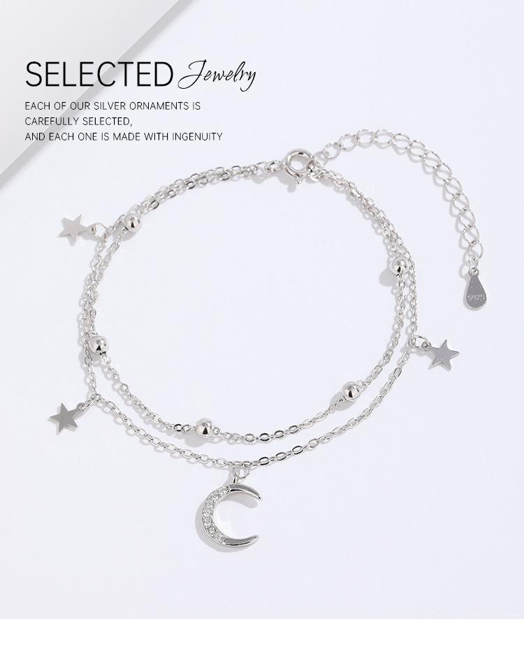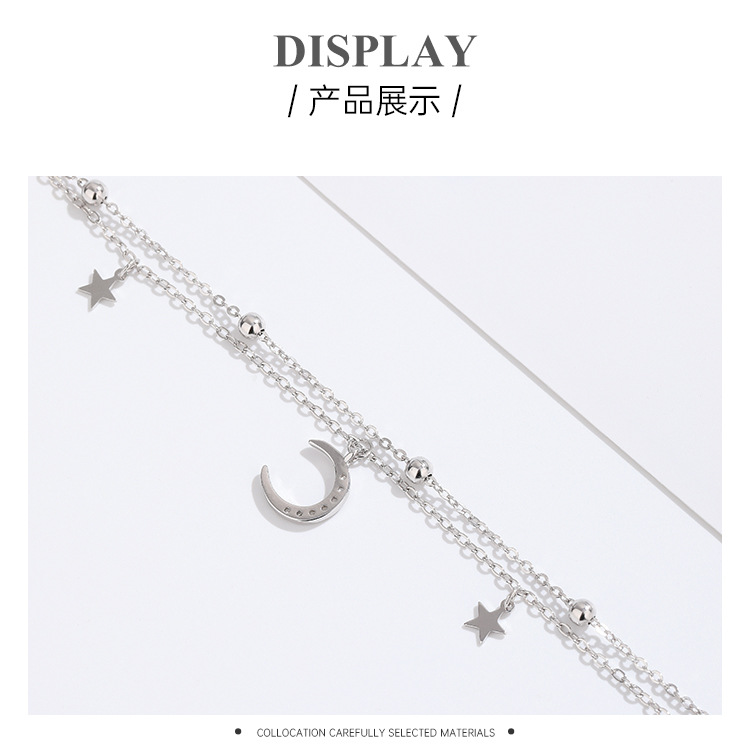 Pulsera de luna de estrella de doble capa de plata esterlina 925 para niñas ins dulce fresco nicho diseño novias Luz de lujo de alta calidad pulsera