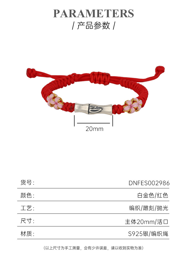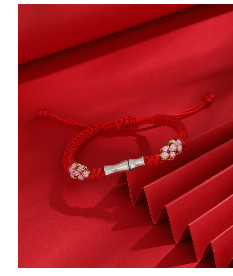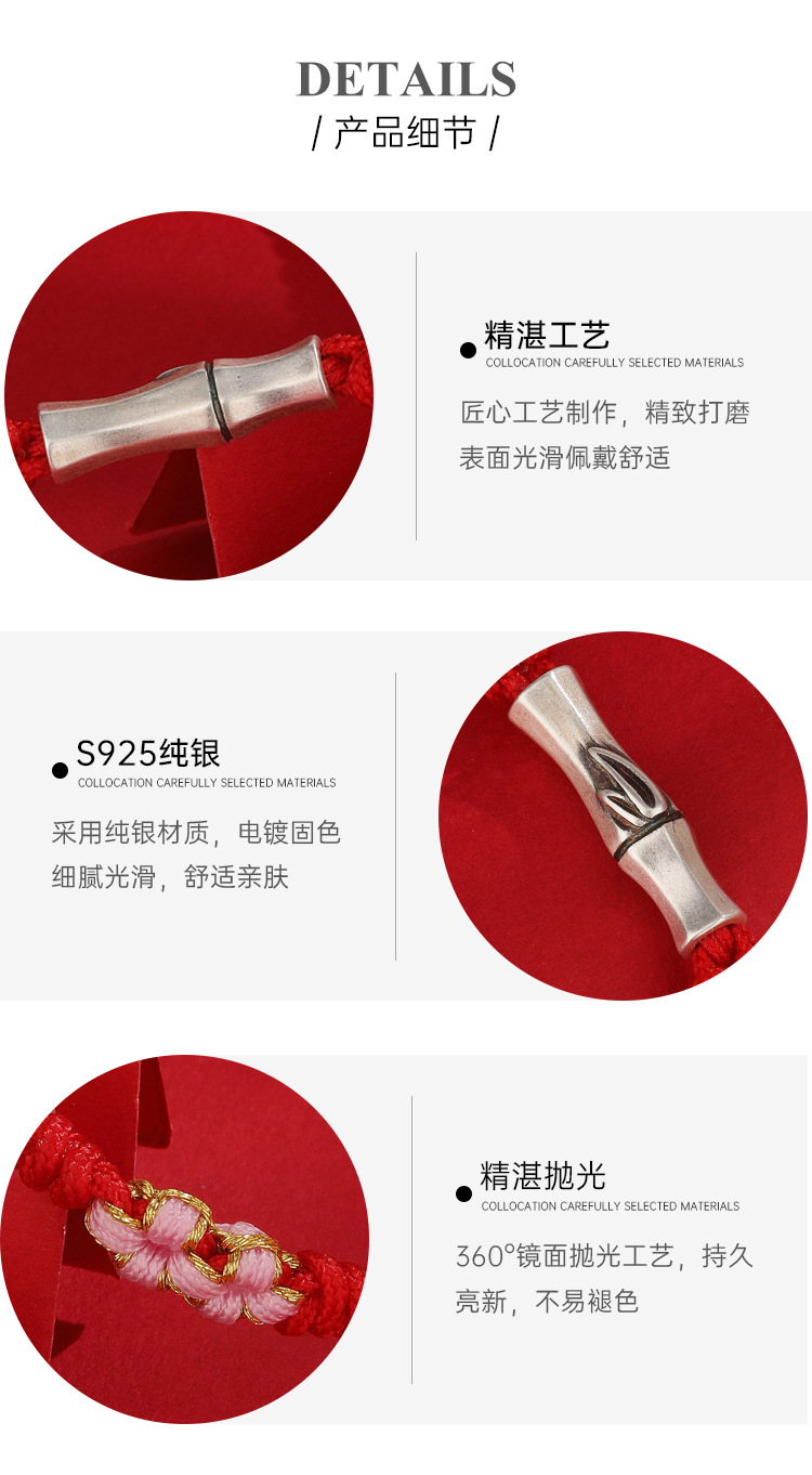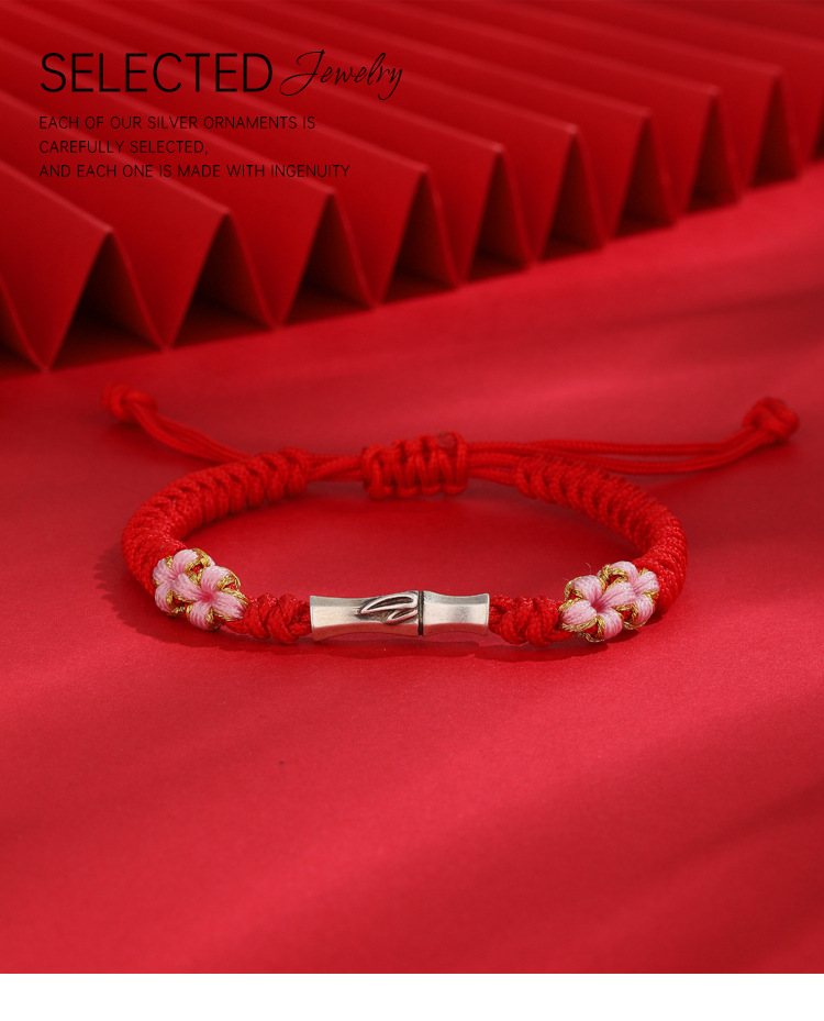 S925 plata de ley de bambú rojo cuerda pulsera niñas tejido Festival de gran altura en tierra cuerda de mano nicho novias pareja regalo