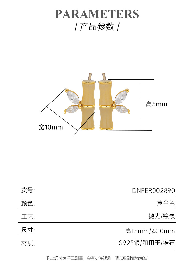 Hetian Jade bambú 925 pendientes de plata esterlina elegante estilo antiguo diseño de nicho de alto grado pendientes 2023 nuevos pendientes