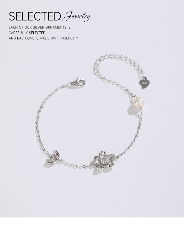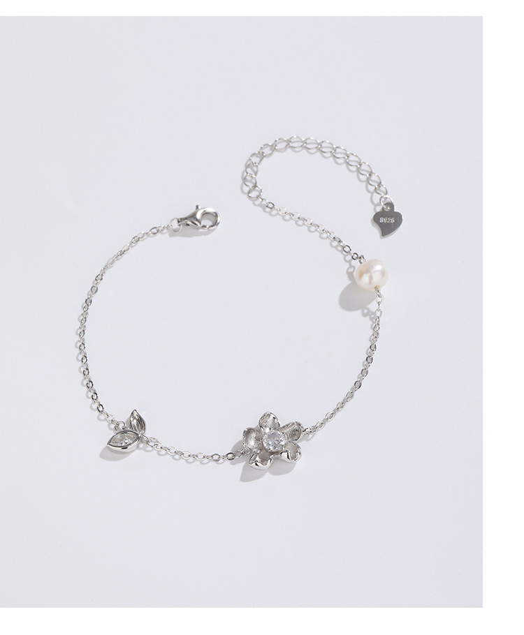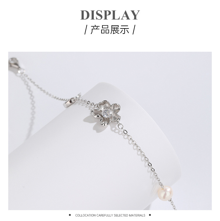 925 de plata esterlina perla de agua dulce flor pulsera mujer nicho diseño estilo coreano alto sentido pulsera novia regalo