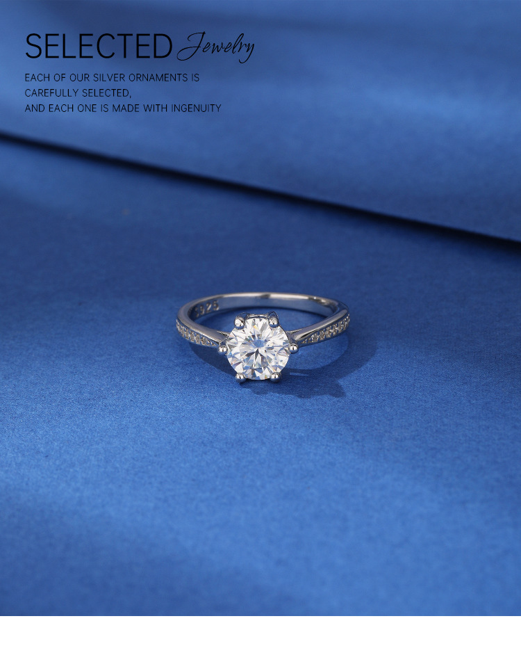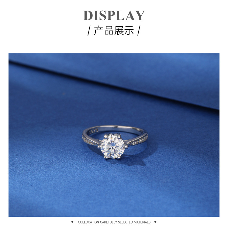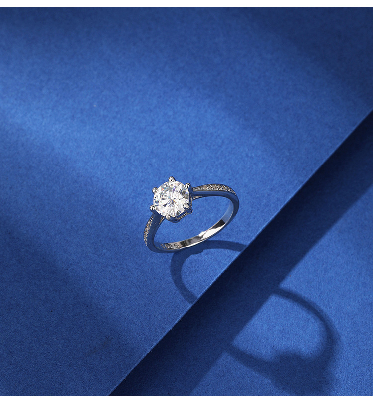 Anillo de diamantes de moissanita Anillo de plata de ley 925 Anillo de seis garras de un quilate Pareja Anillo de bodas de lujo Propuesta de matrimonio Regalo de bodas