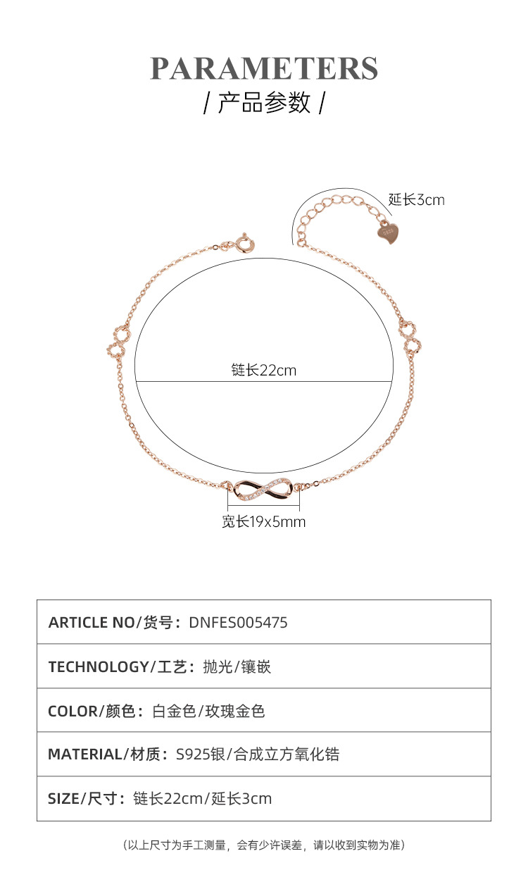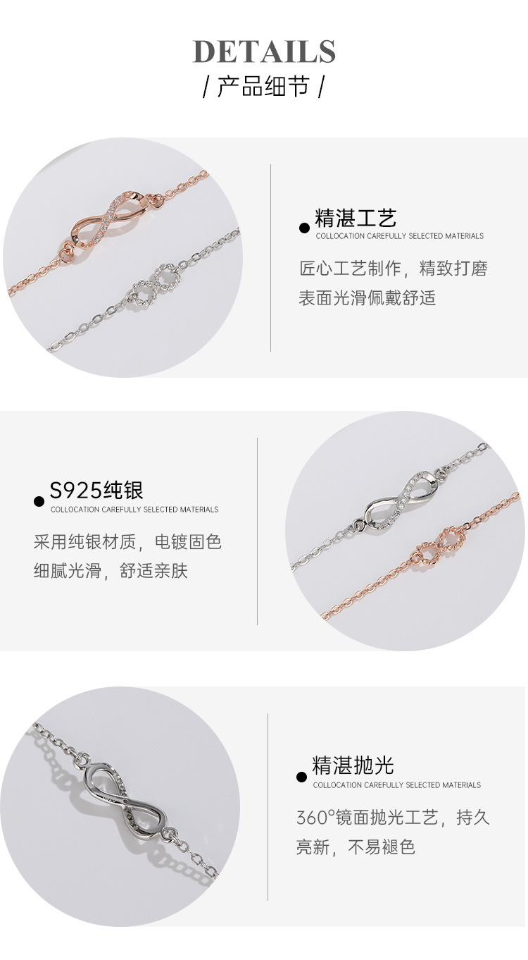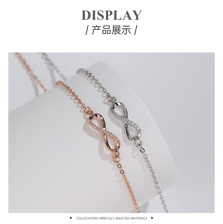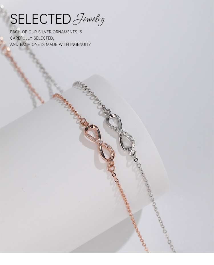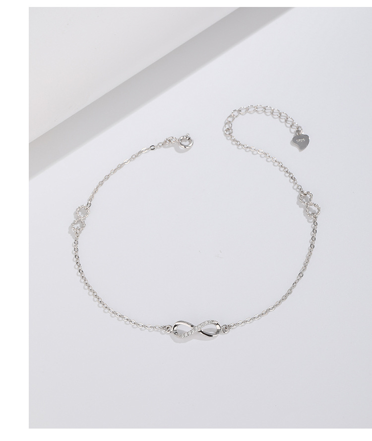 925 plata esterlina bucle ilimitado tobillera de 8 palabras para niñas simple estilo coreano nicho de alto grado Cadena de pierna verano Cadena de pie desnudo