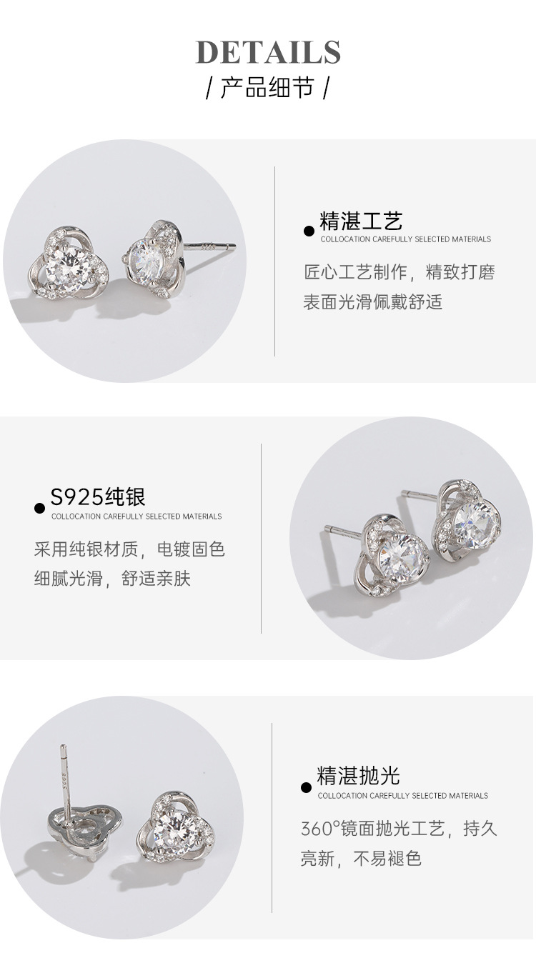 925 pendientes de plata esterlina trébol de verano femenino nicho diseño pendientes de flores con incrustaciones de circón pendientes de temperamento de alta calidad