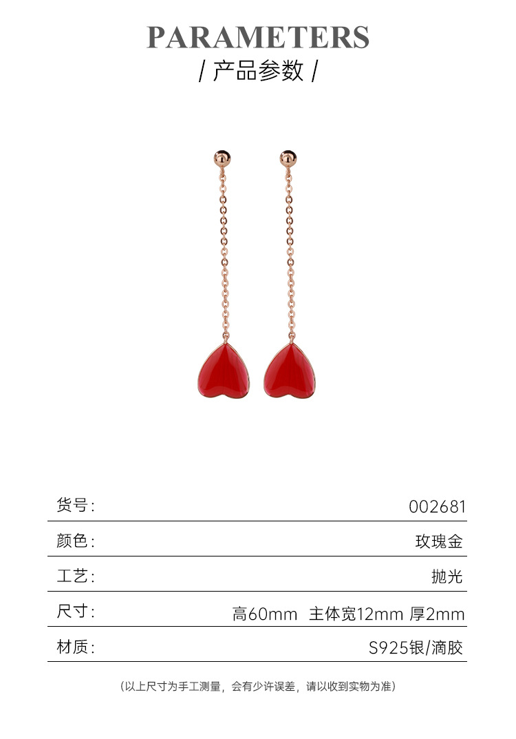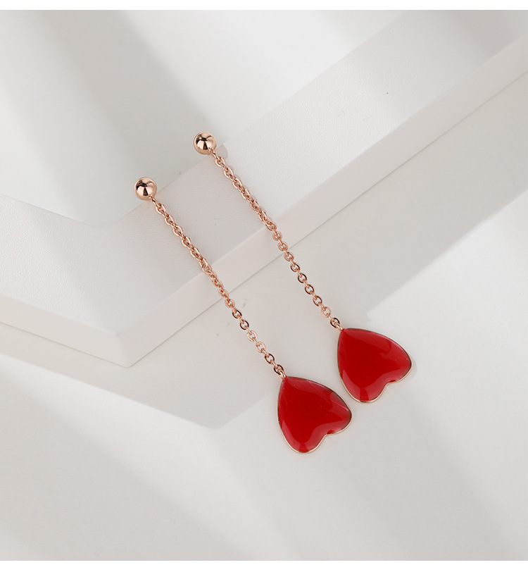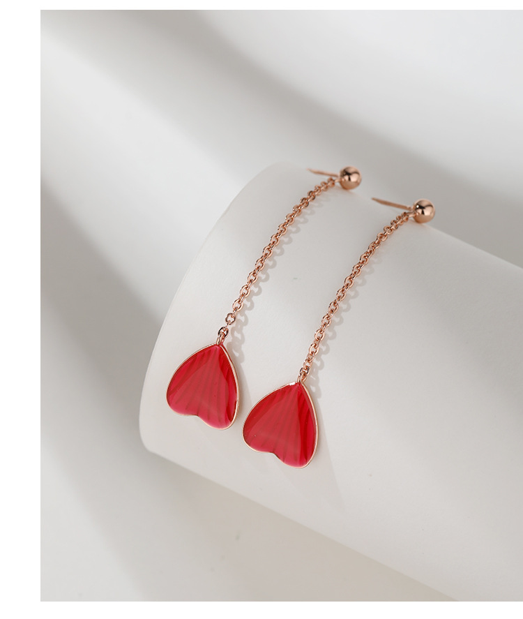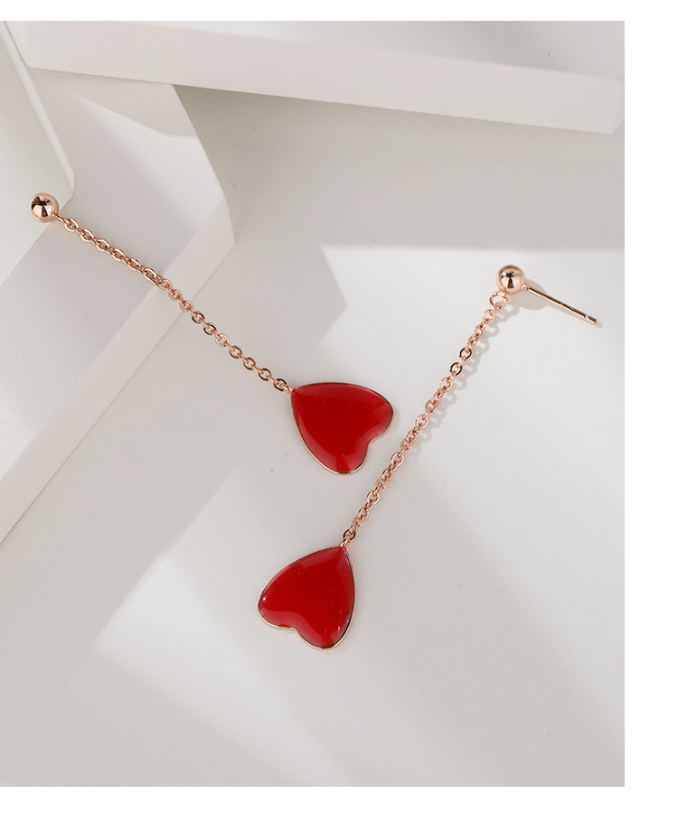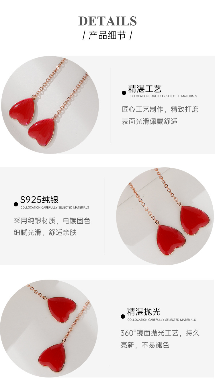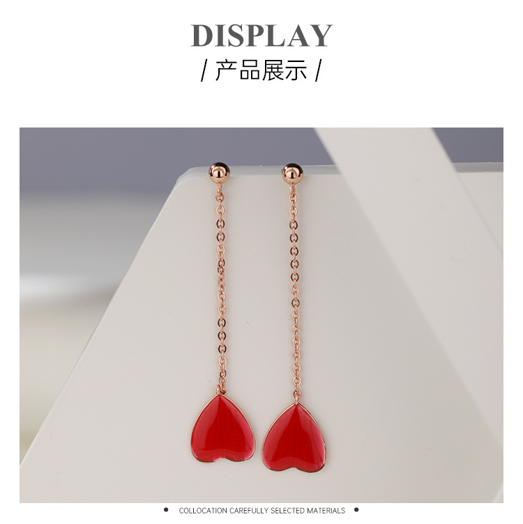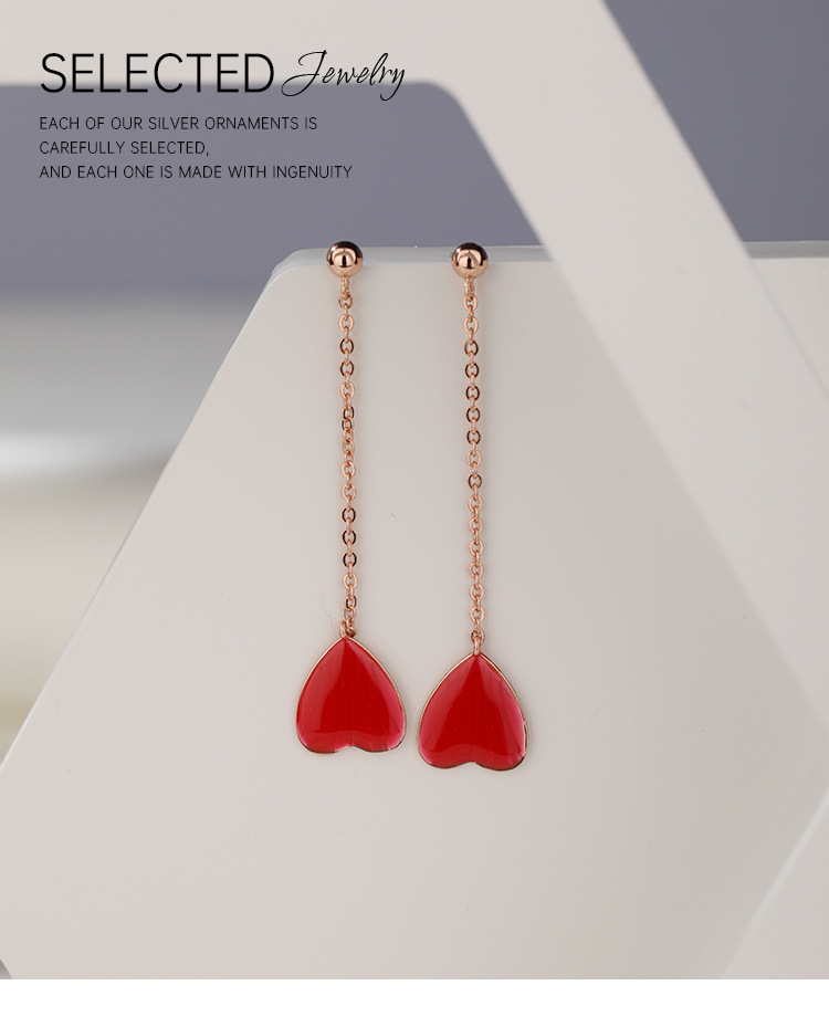 Pendientes de amor rojo pendientes largos de borla 925 plata esterlina nicho de alto grado temperamento melocotón corazón pendientes