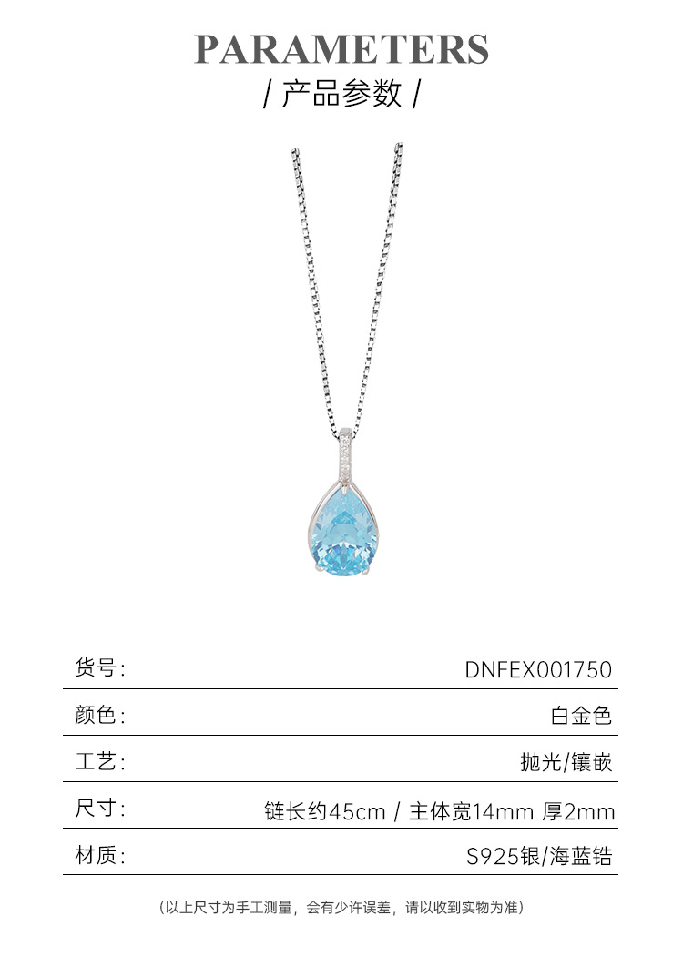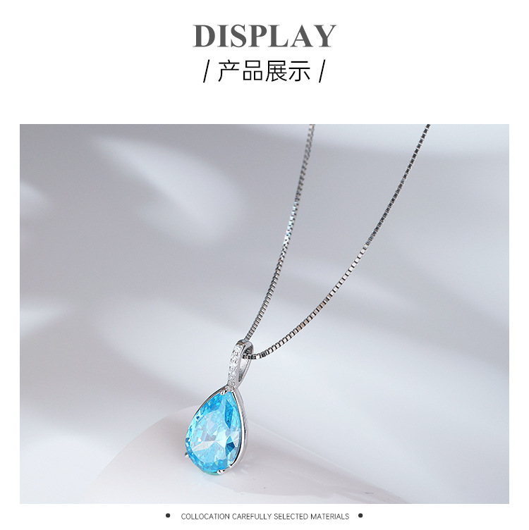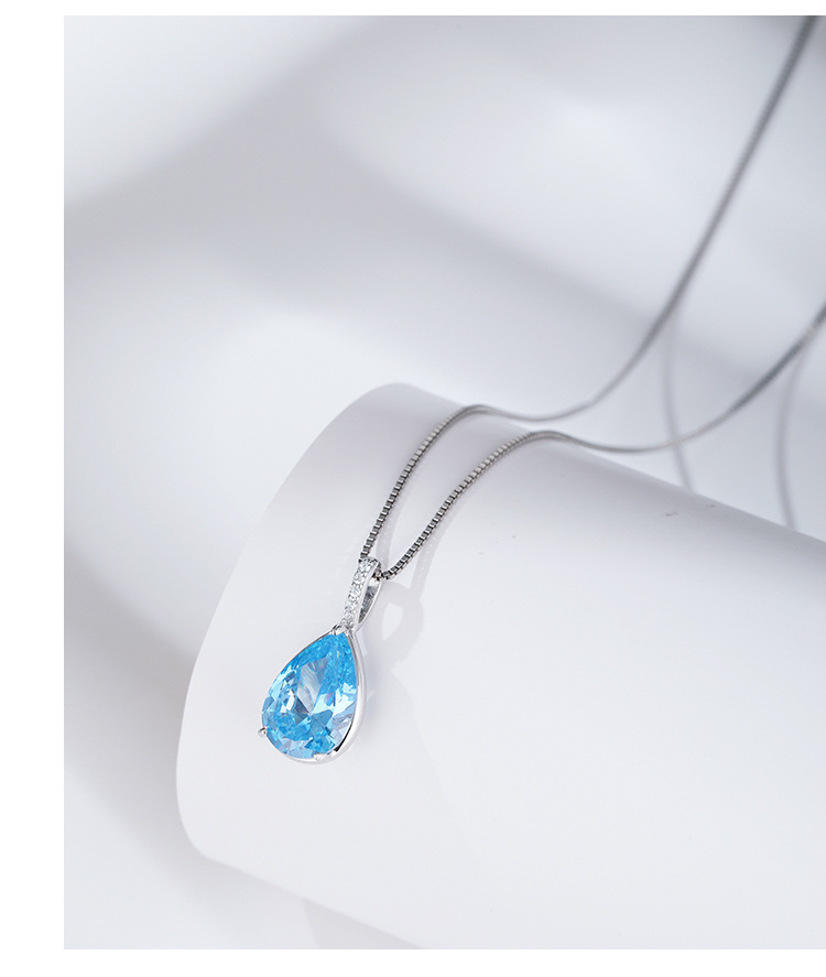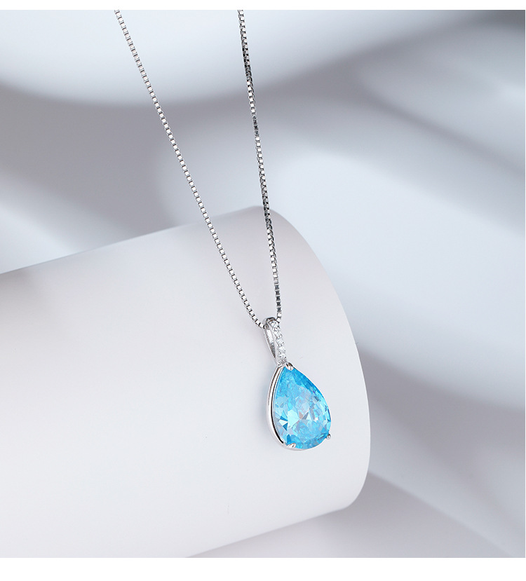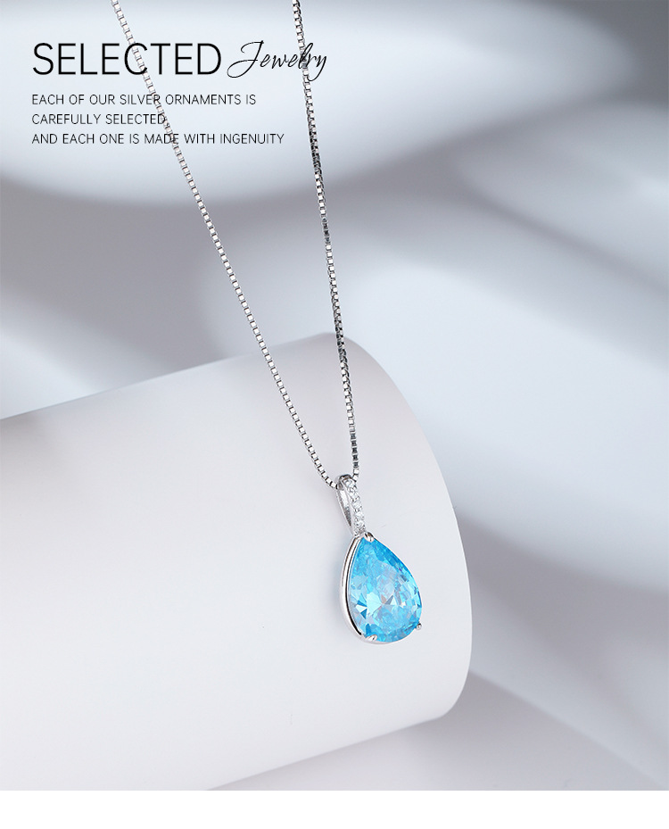 925 de plata de ley en forma de gota mar azul circón collar de las mujeres de moda simple nicho de alto grado colgante collar de cadena de clavícula