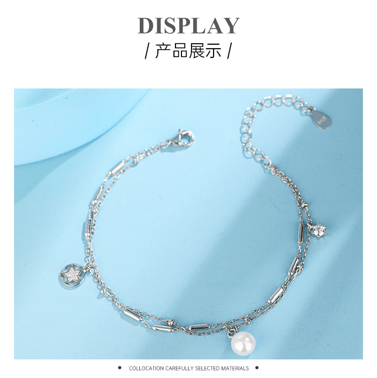 925 plata esterlina perla estrella doble capa pulsera de las mujeres Luz de verano lujo nicho niñas exquisita pulsera regalo para novias