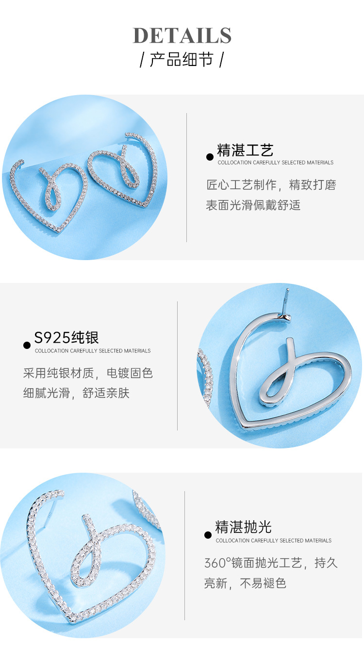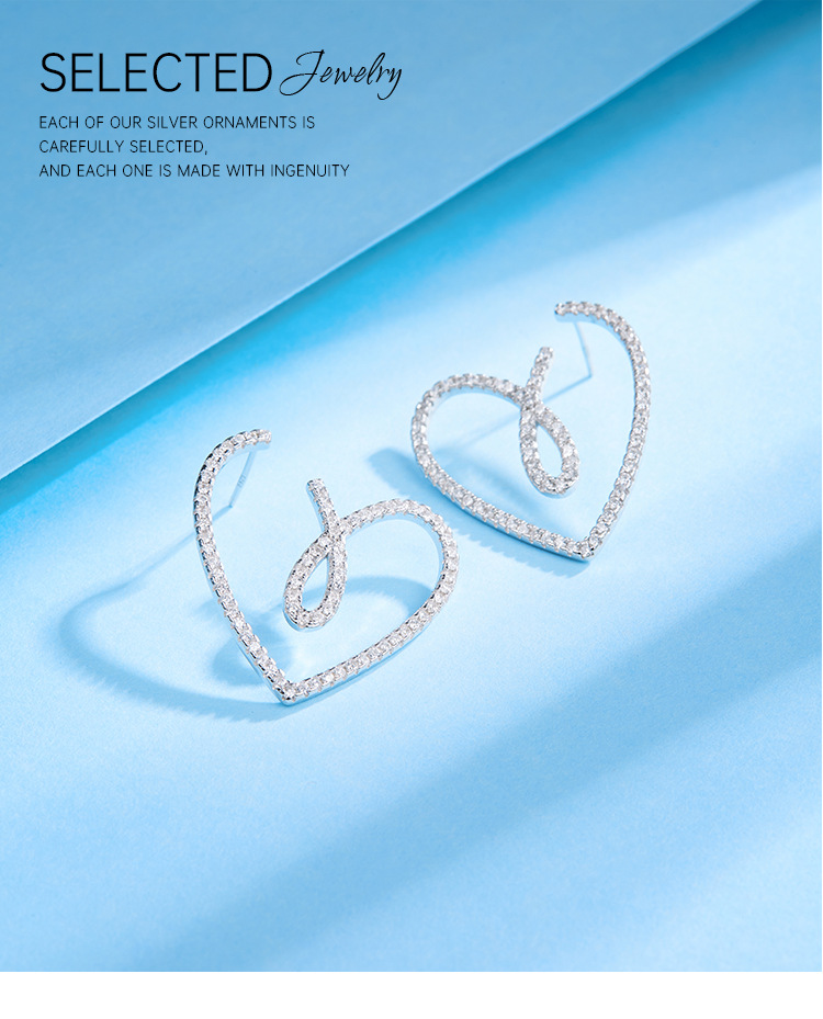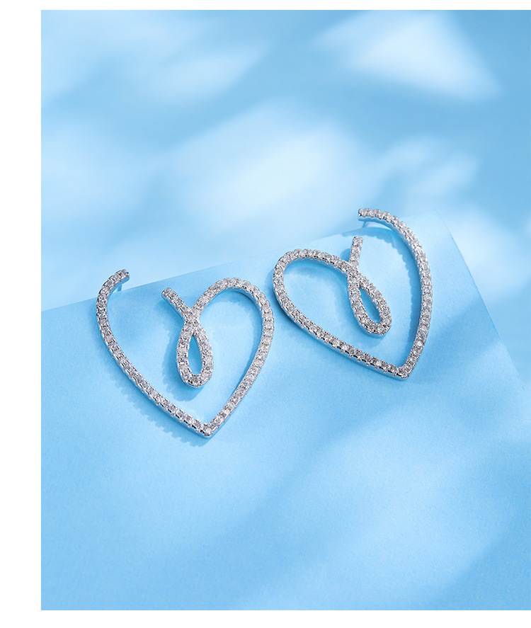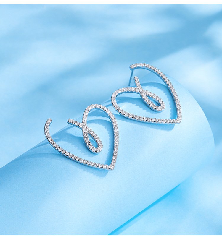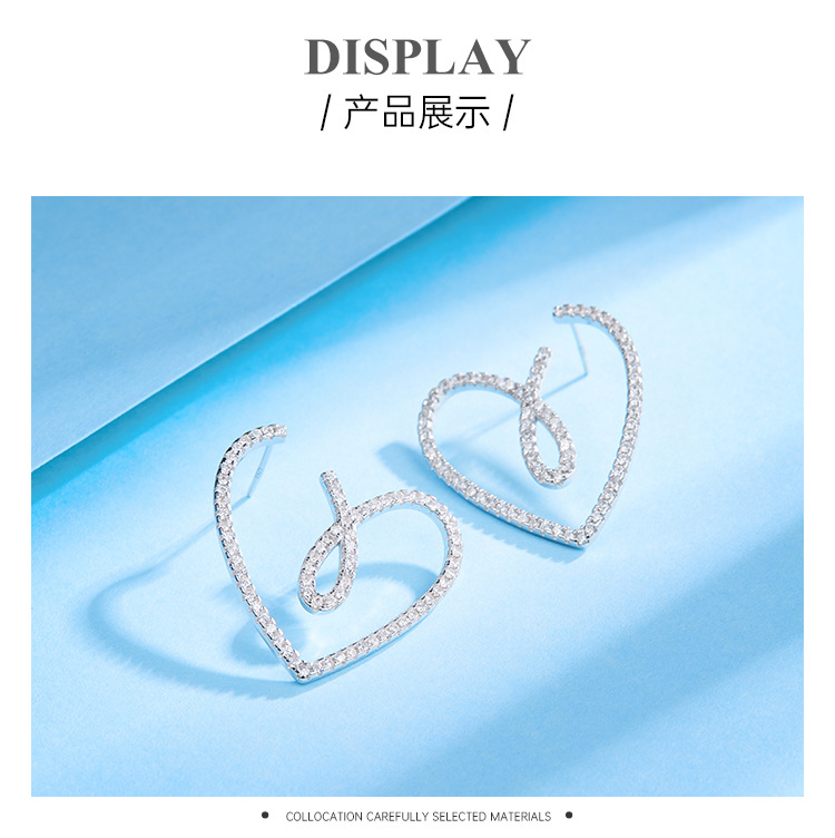 Lleno de diamantes pendientes encantadores para las mujeres 925 Luz de plata de lujo de alto grado temperamento nicho diseño pendientes en forma de corazón pendientes Nuevo