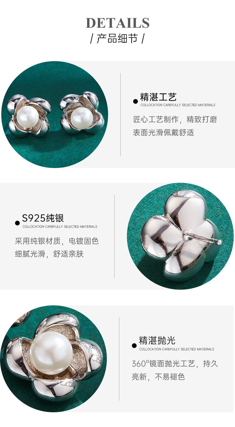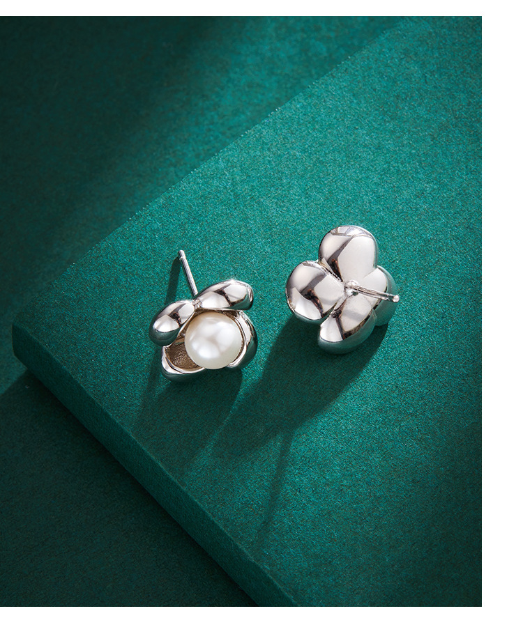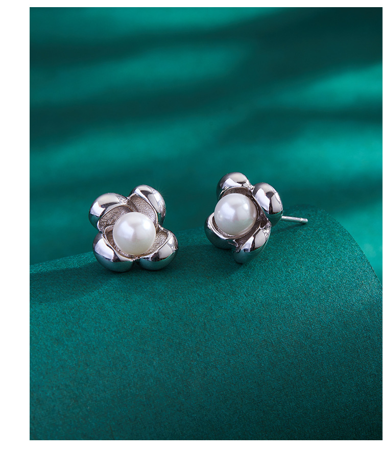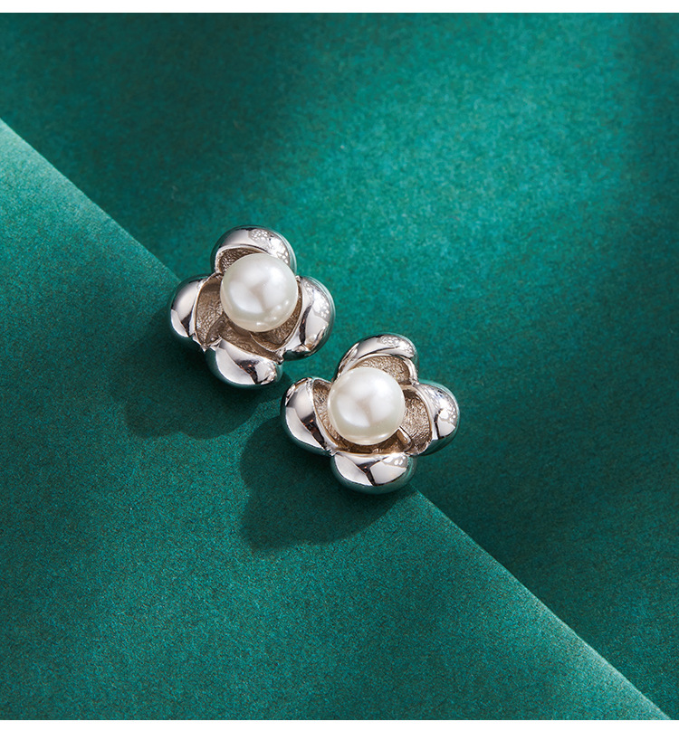 Temperamento flor perla pendientes de plata esterlina 925 ligera nicho de lujo diseño de alto nivel estilo retrógrado francés pendientes de perlas
