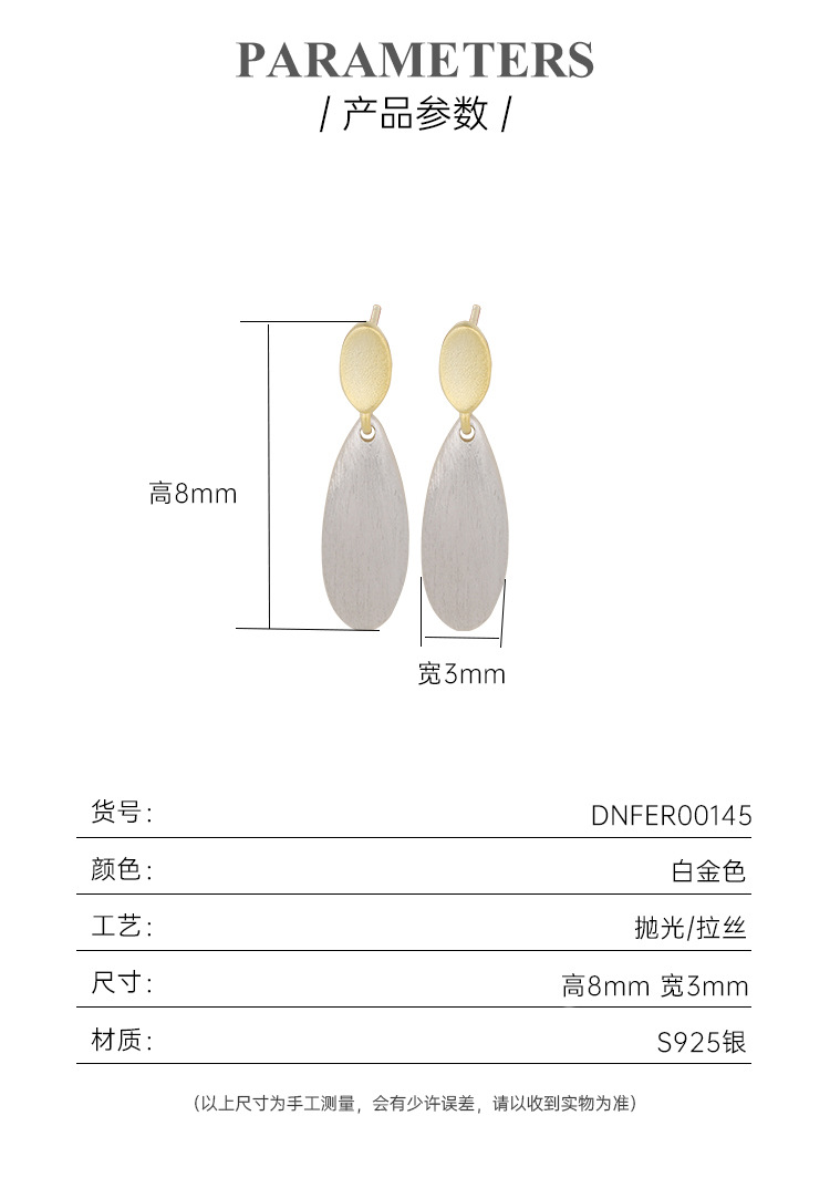 925 plata esterlina gota de agua pendientes cepillados diseño nicho de las mujeres pendientes largos luz de lujo de alto grado pendientes minimalistas temperamento