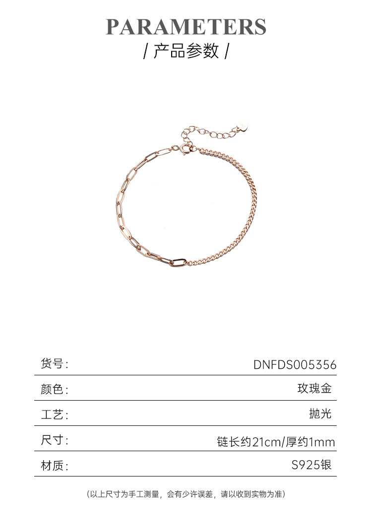 925 pulsera de costura de plata esterlina para mujeres ins simple diseño de alta gama sentido nicho temperamento cadena simple exquisita pulsera estilo frío