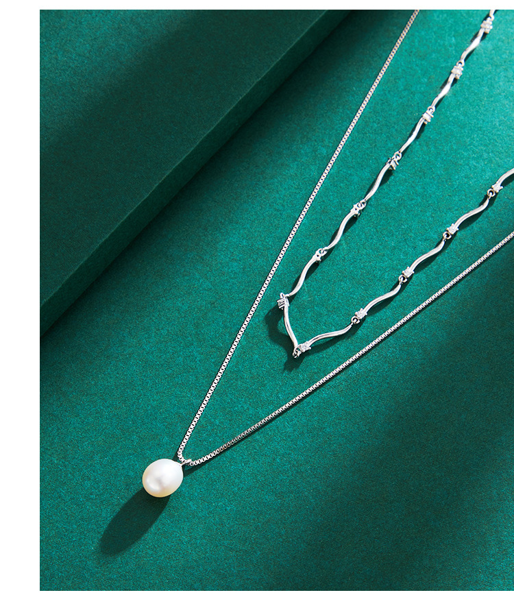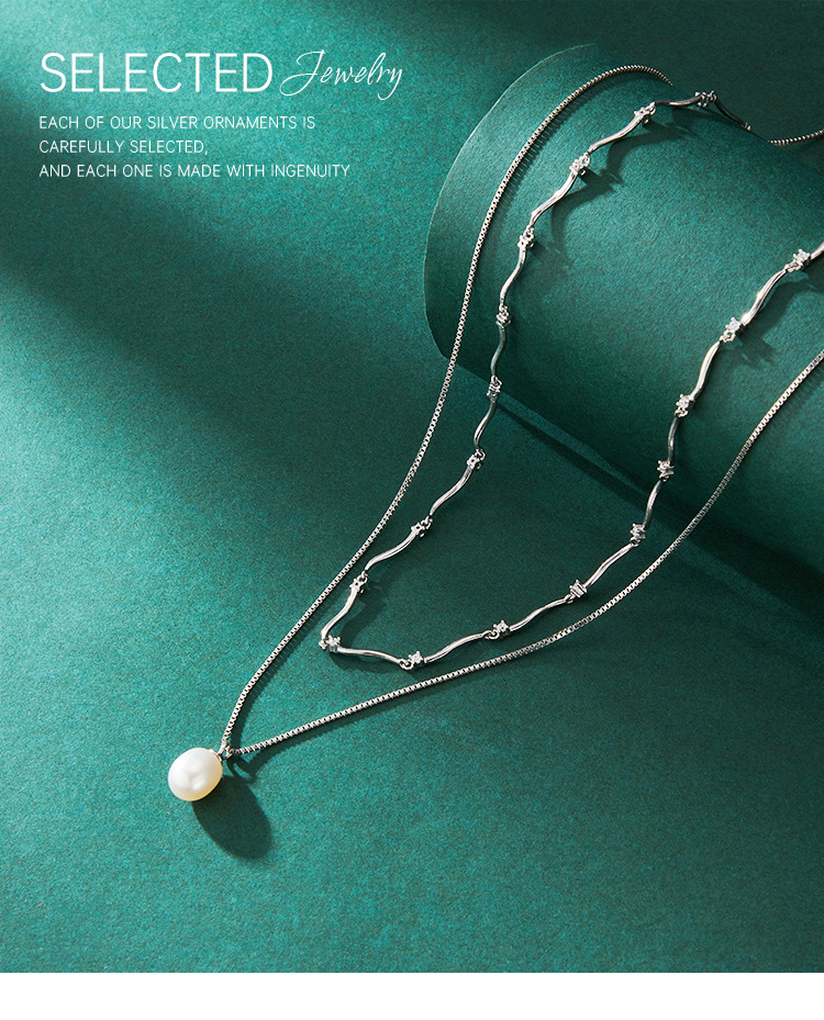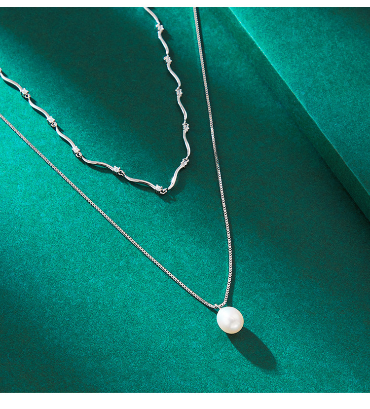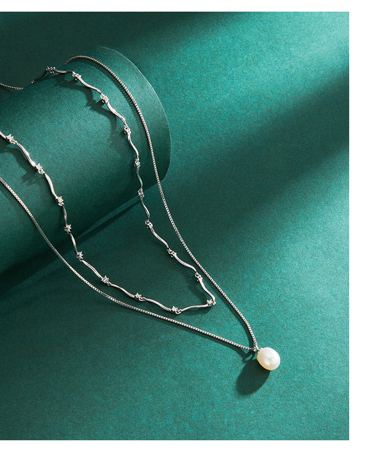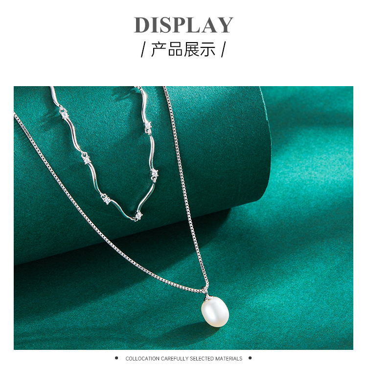 Collar apilado de perlas de agua dulce para mujeres 925 Luz de plata de ley nicho de lujo elegante de alto grado de doble capa accesorios de cadena de clavícula