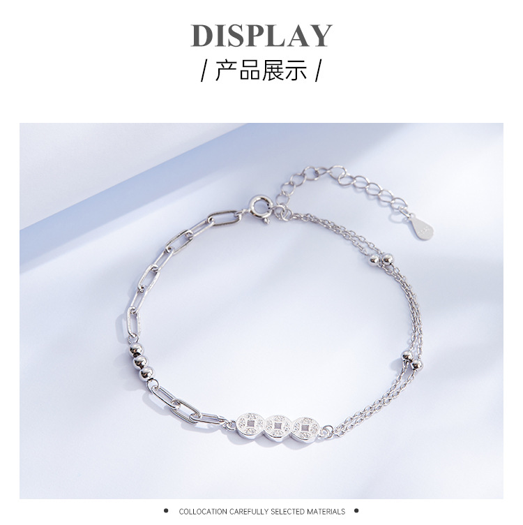 925 plata esterlina cobre moneda pulsera para mujeres verano 2023 nuevo nicho diseño de alto grado temperamento personalidad retro pulsera