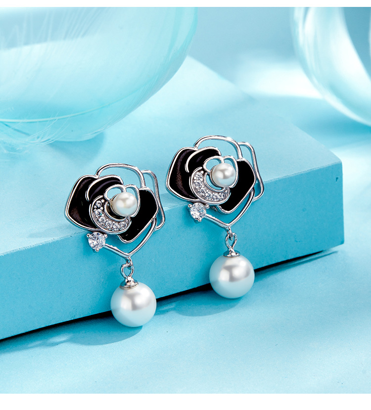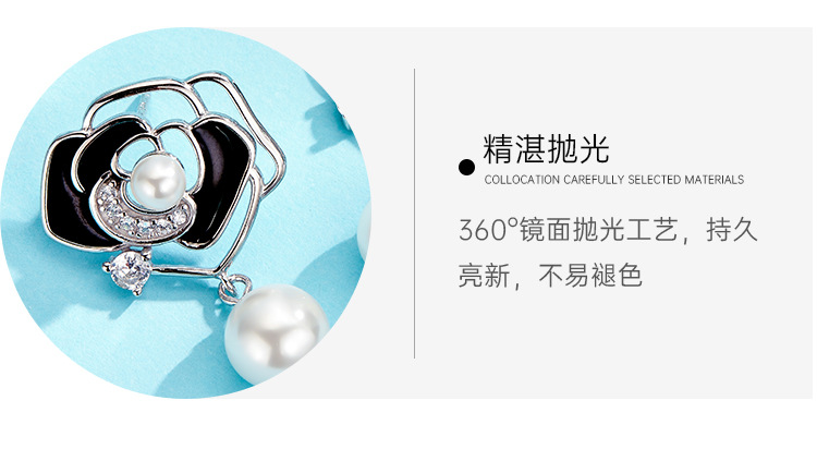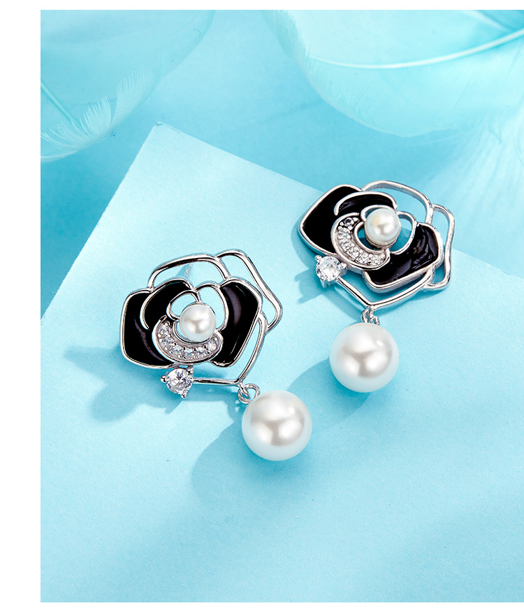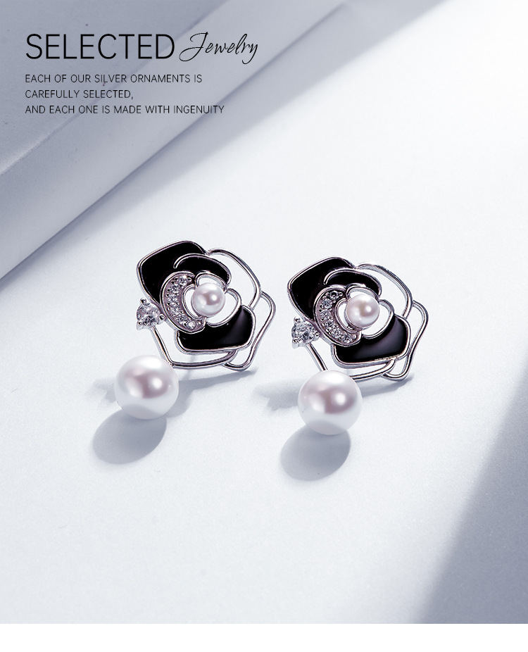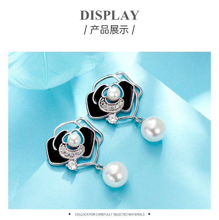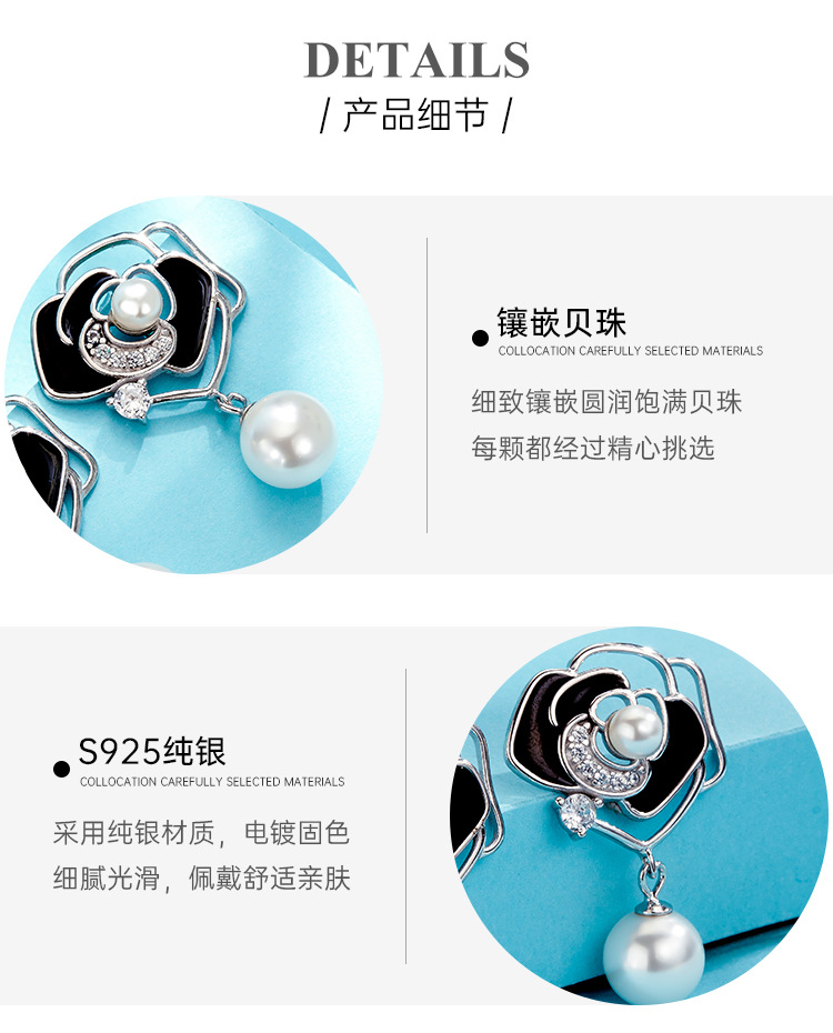 Pendientes de perlas de Camelia pendientes de plata de ley de las mujeres 2023 nueva luz de lujo pendientes de flores de alta calidad