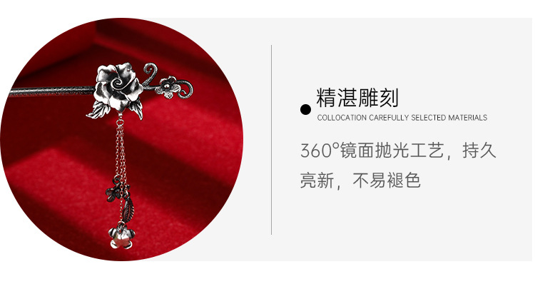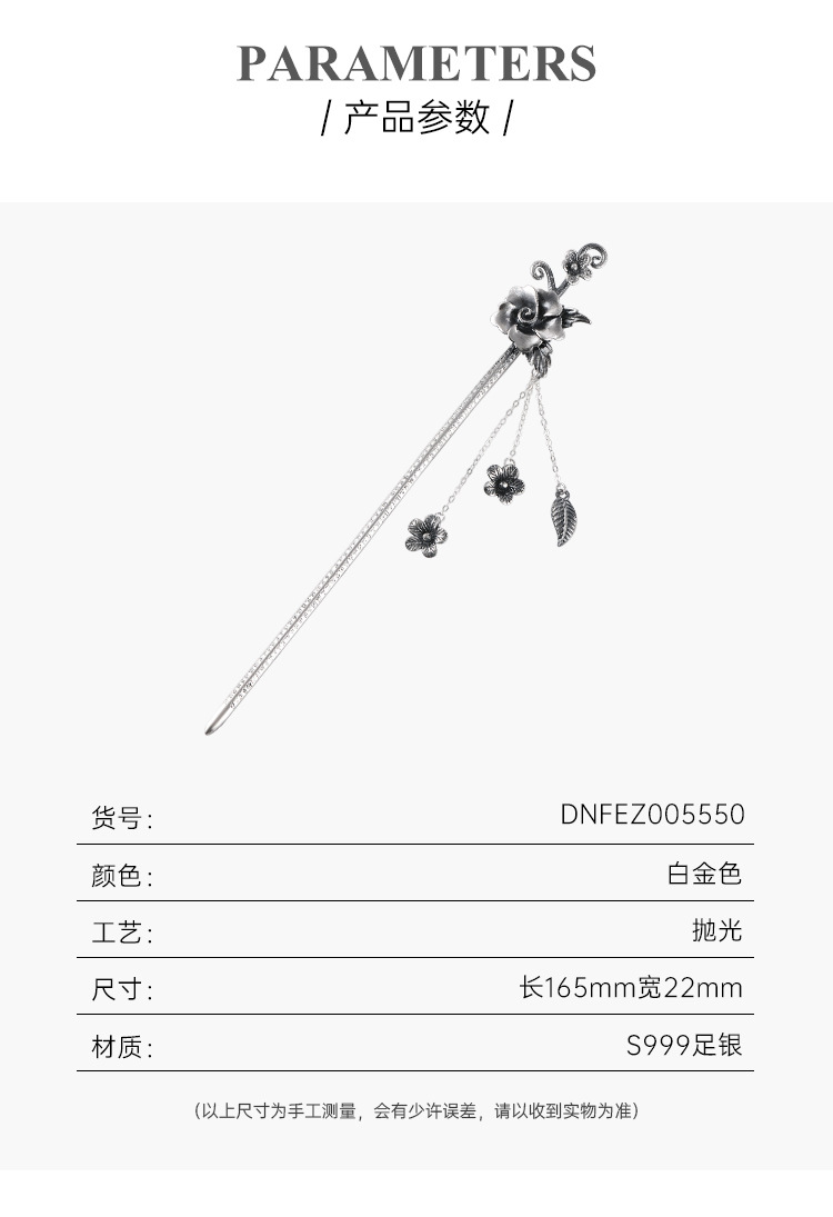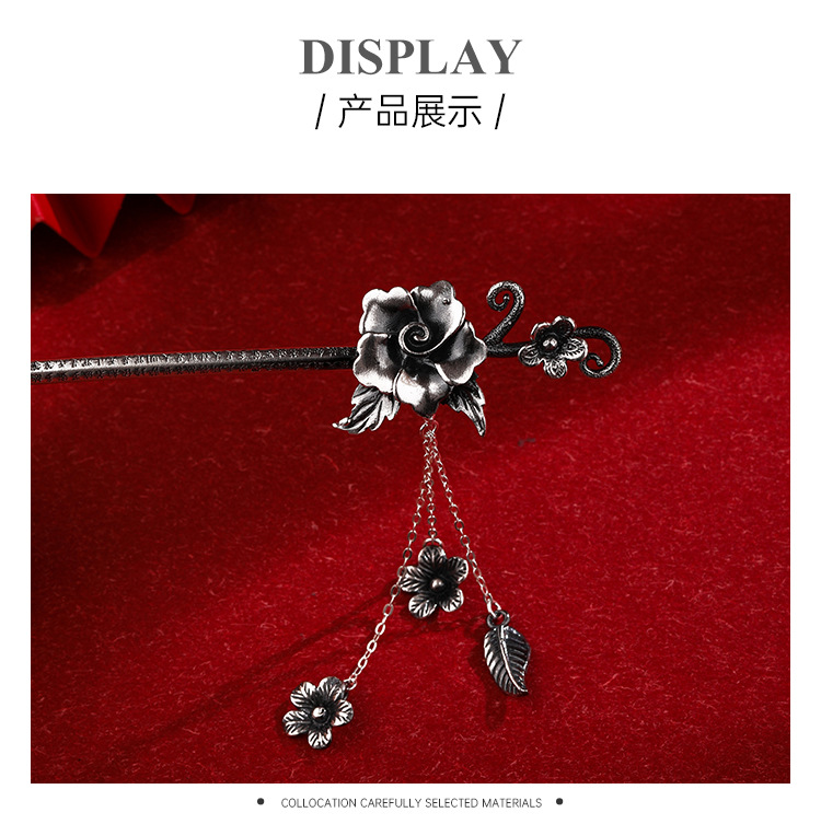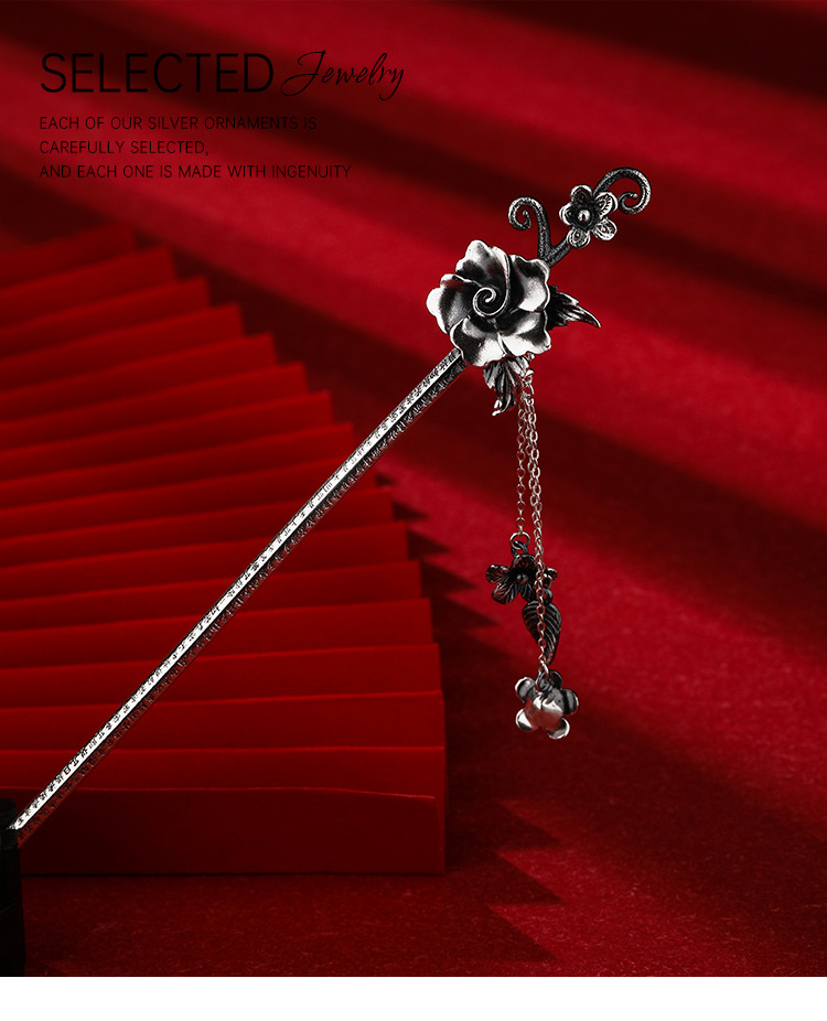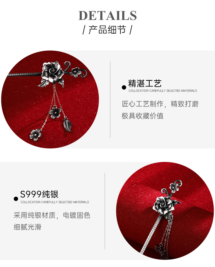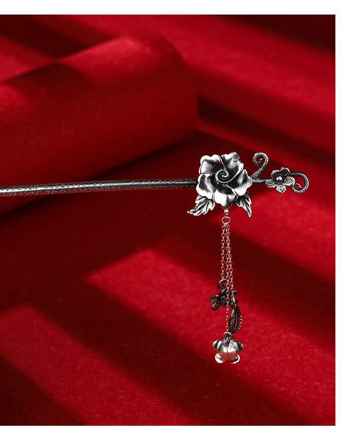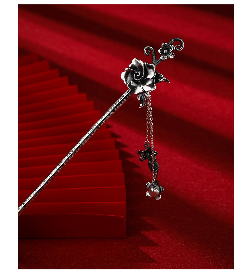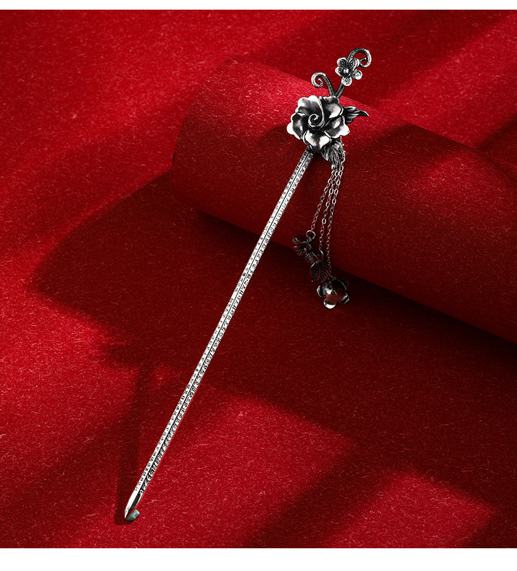 Plata de ley horquilla 999 plata pura estilo antiguo hanfu updo tocado horquilla flor borla accesorios para el cabello horquilla de plata para novia
