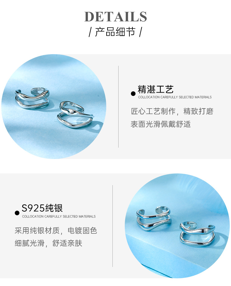 S925 clip de oreja de plata sin perforado de alto grado de diseño simple pequeño clip de hueso de la oreja estilo frío pendientes elegantes pendientes