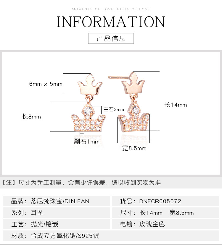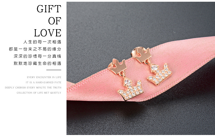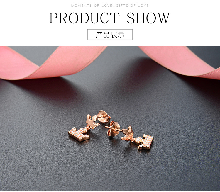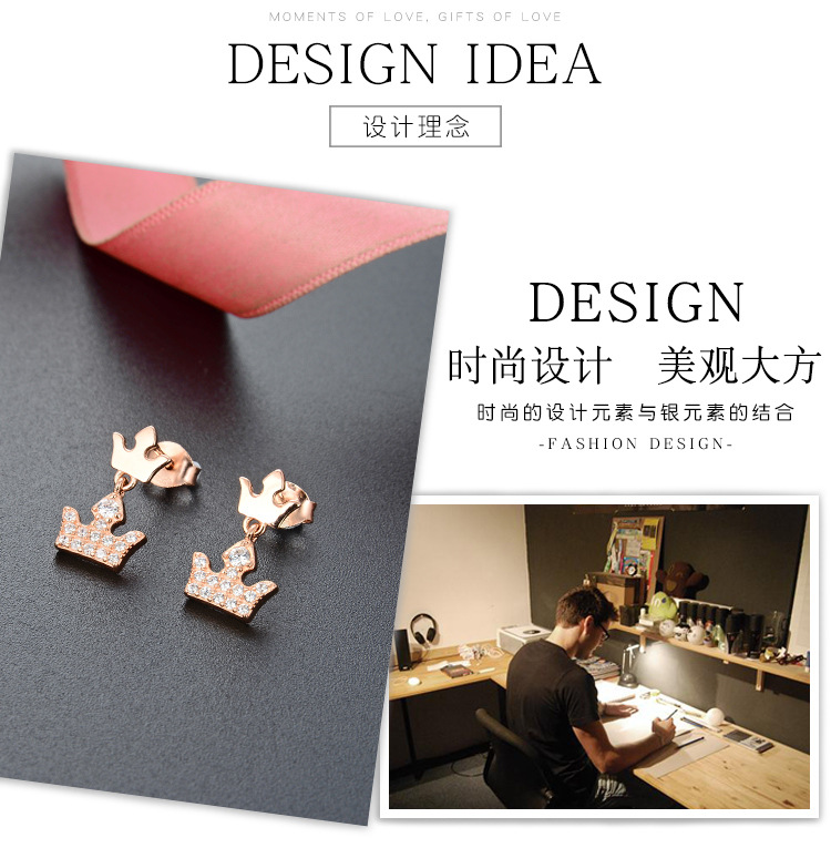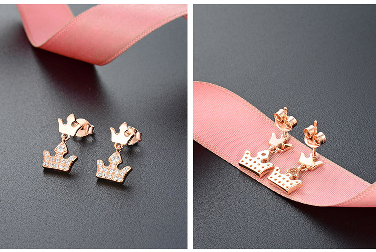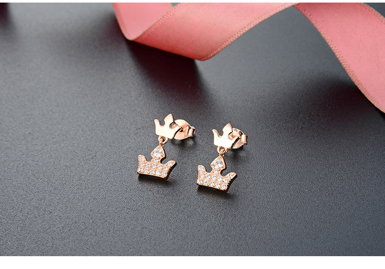 S925 plata esterlina pequeña corona pendientes elegante diseño simple sentido de gama alta pequeños exquisitos pendientes de oro rosa pendientes para las mujeres