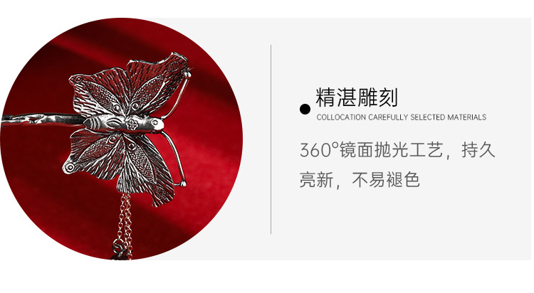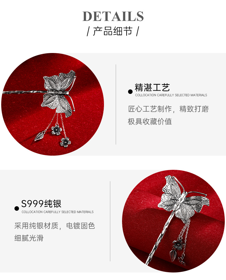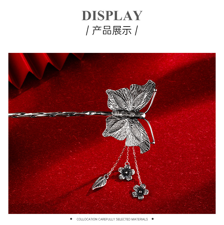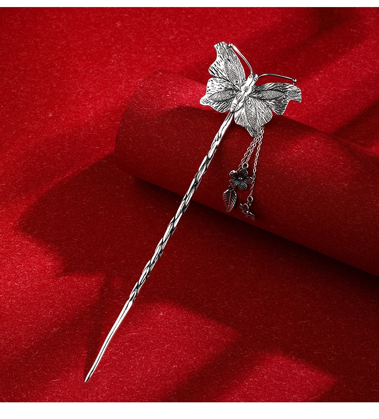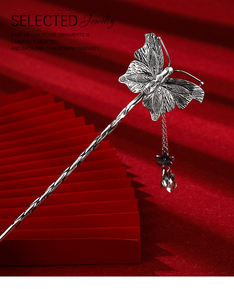 Horquilla de plata 999 plata esterlina estilo étnico vintage mariposa borla updo pelo headwear accesorios para el cabello de plata pura updo horquilla del pelo