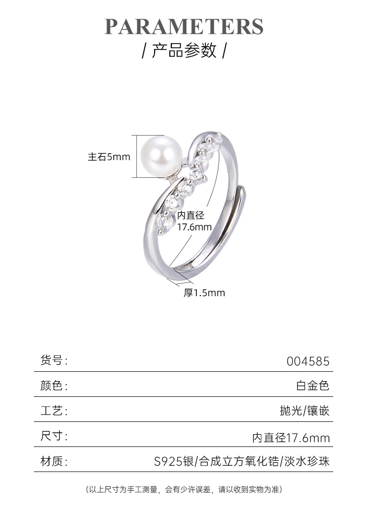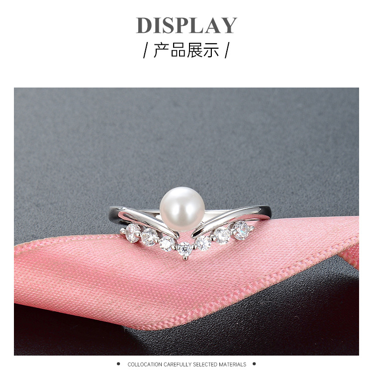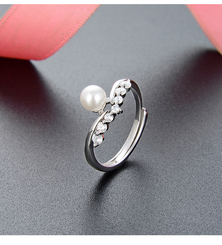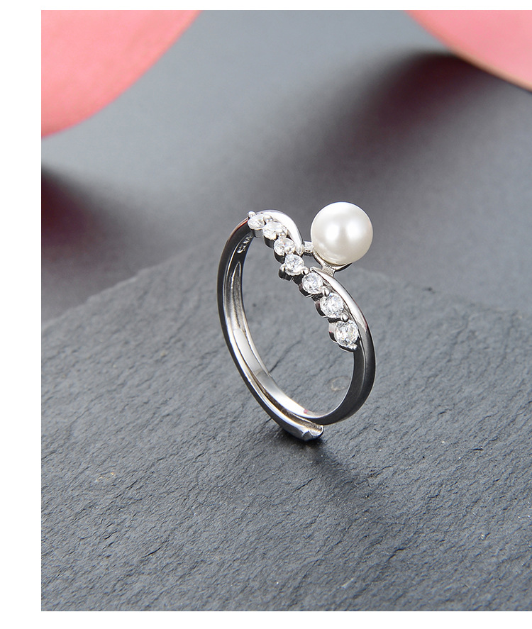 Estilo japonés y coreano Cruz-dulce elegante incrustaciones anillo de perlas hembra S925 plata esterlina de una sola fila diamante perla anillo abierto pulsera