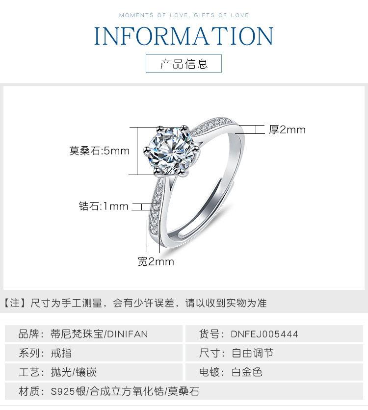 | Color | Anillo de moissanite de 50 puntos,Anillo de moissanite de 1 quilate |