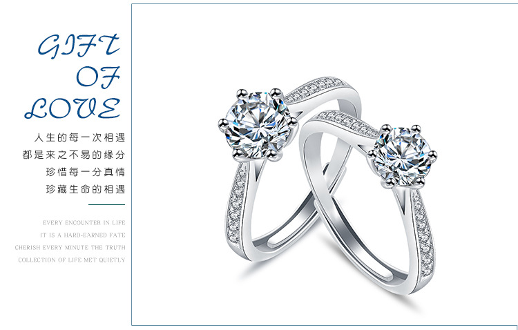 D-color moissanite anillo de diamantes 1 quilates anillo de Plata de Ley 925 pareja clásico anillo de seis garras propuesta de boda para novia