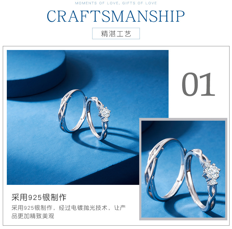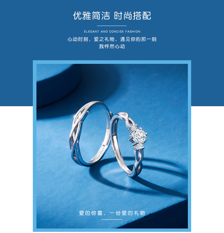 Par de anillo de plata esterlina par de anillo de hombres y mujeres Luz de lujo nicho diseño de alto grado letras abiertas regalo de cumpleaños