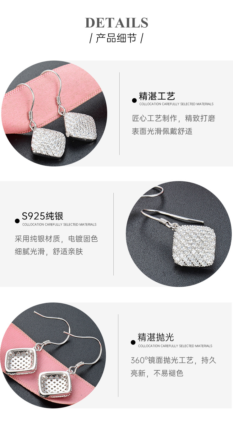 Corea del Sur nuevo estilo fresco estilo personalizado diamante joyería oído gancho s925 plata esterlina elegante diamante pendientes populares pendientes femeninos