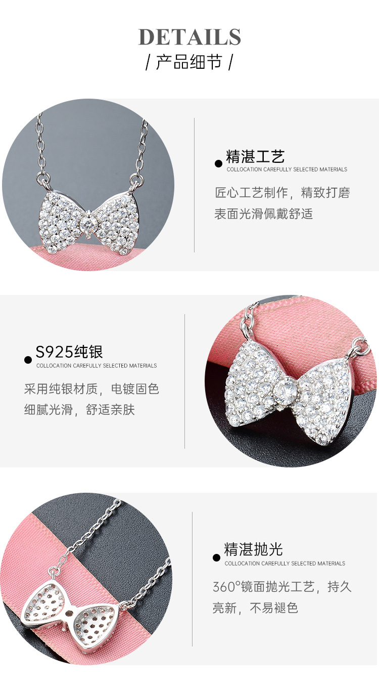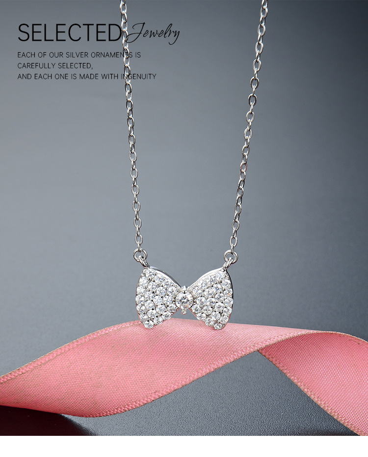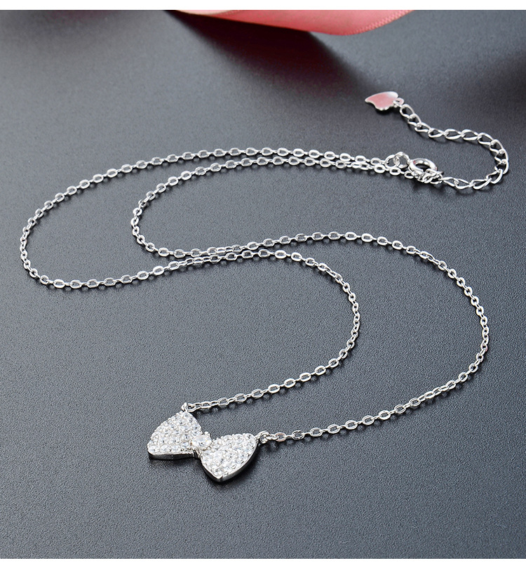 Estilo coreano simple moda diamante incrustado ZIRCON cadena colgante s925 plata esterlina todo partido arco clavícula cadena Collar para las mujeres