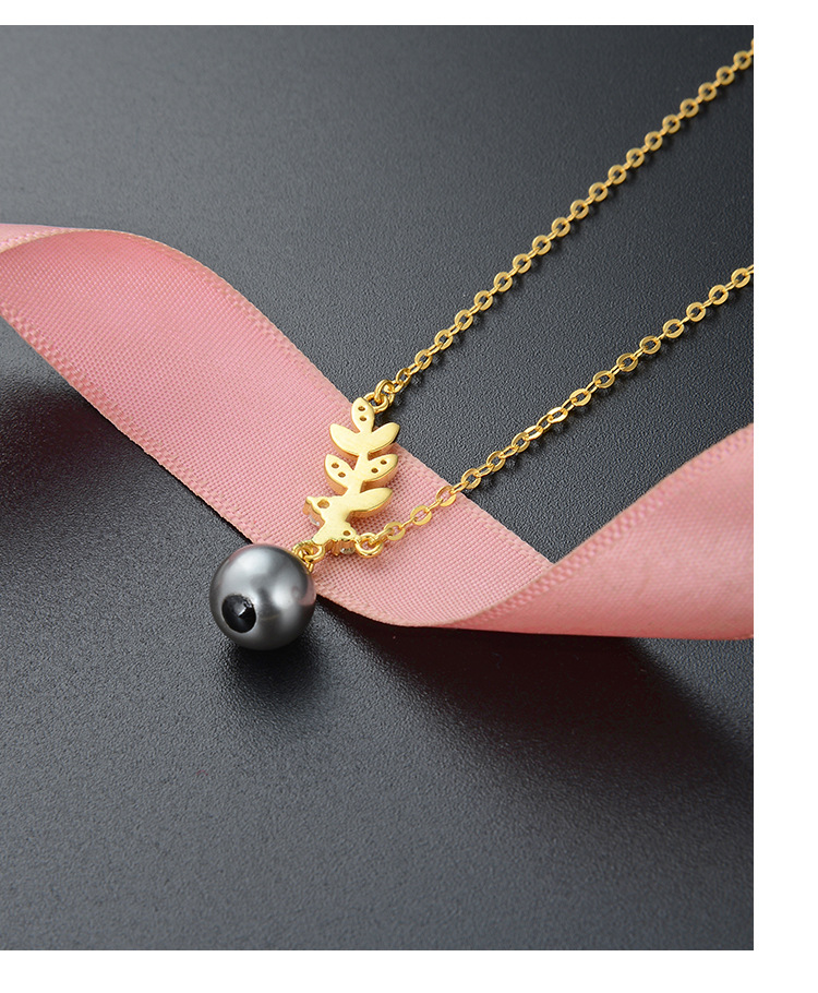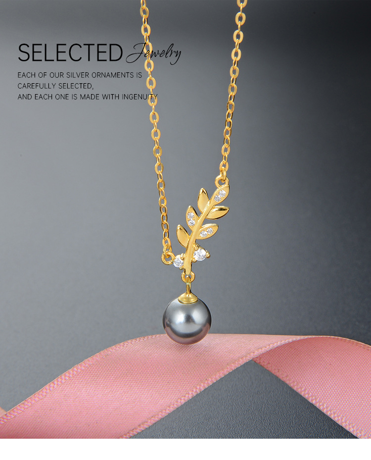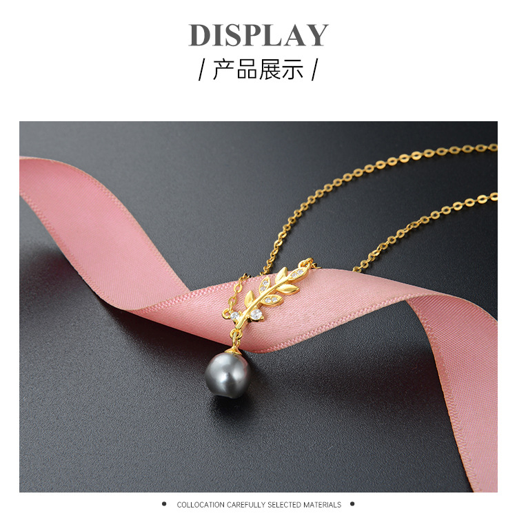 Hoja de diamante las mujeres elegantes accesorios colgante s925 plata ZIRCON negro perla collar Corea del Sur simple clavícula cadena