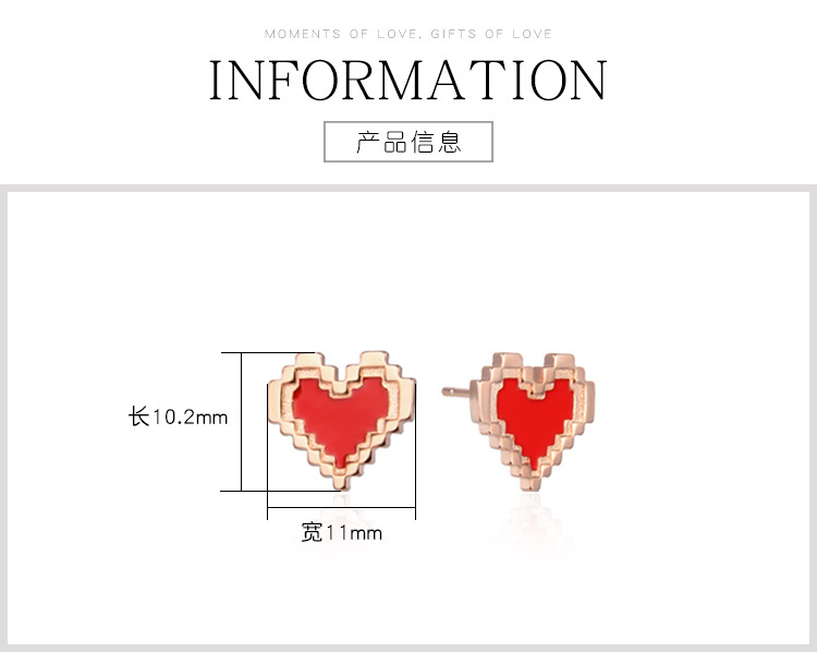 Precioso aretes 925 plata esterlina simple luz de lujo nicho diseño rojo pixel melocotón corazón pendientes de alto grado de las mujeres