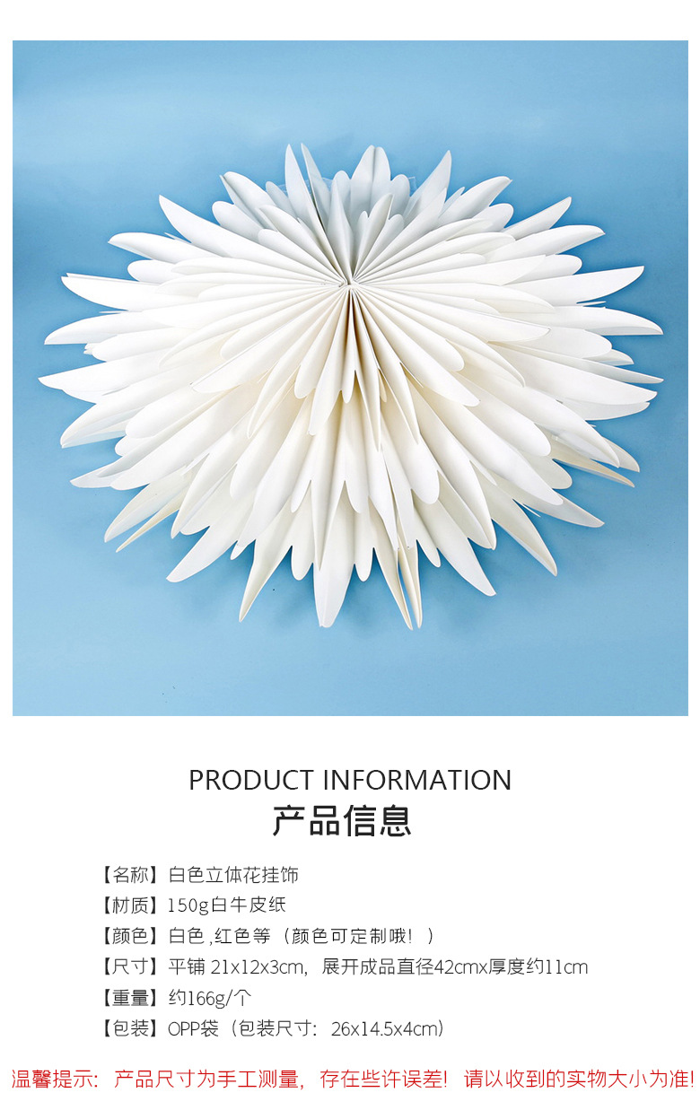 | Tamaño | Colgante de flores de papel tridimensional blanco de 42 cm, colgante de flores de papel tridimensional rojo de 42 cm |