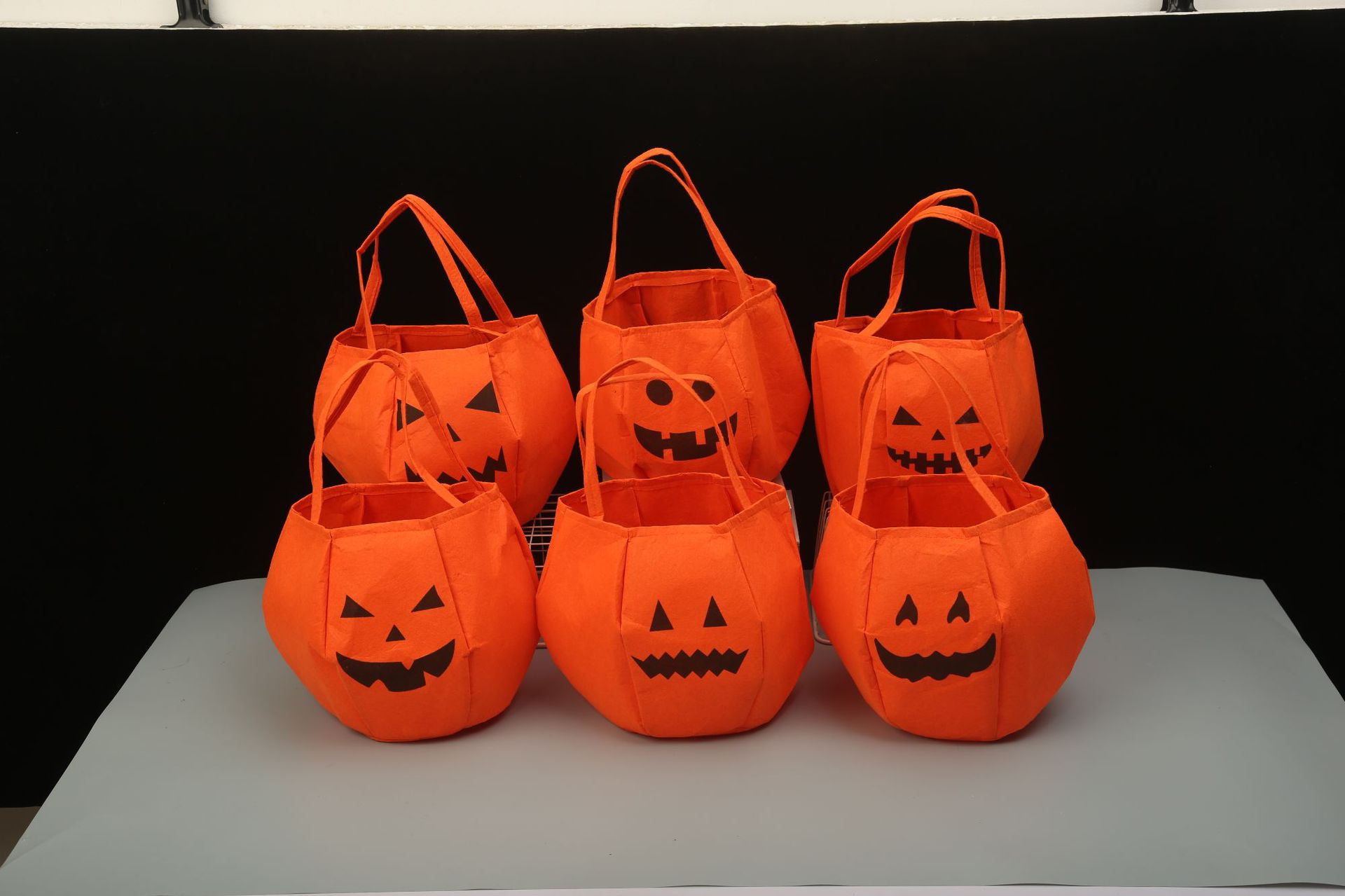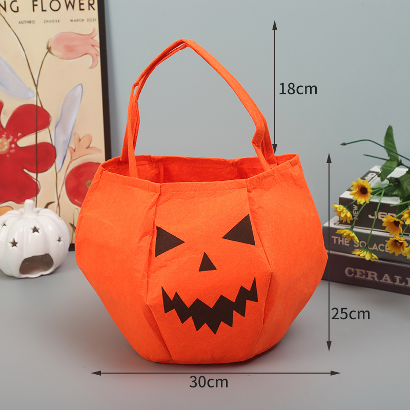 Doble tira de tela no tejida, bolsa de dulces de Halloween, bolsa de calabaza, decoración de la atmósfera del festival de fantasmas, accesorios de actuación para niños