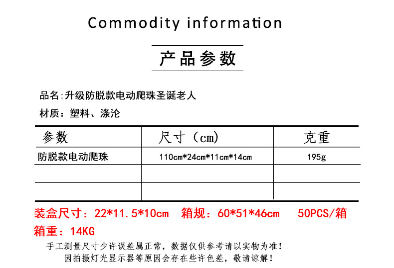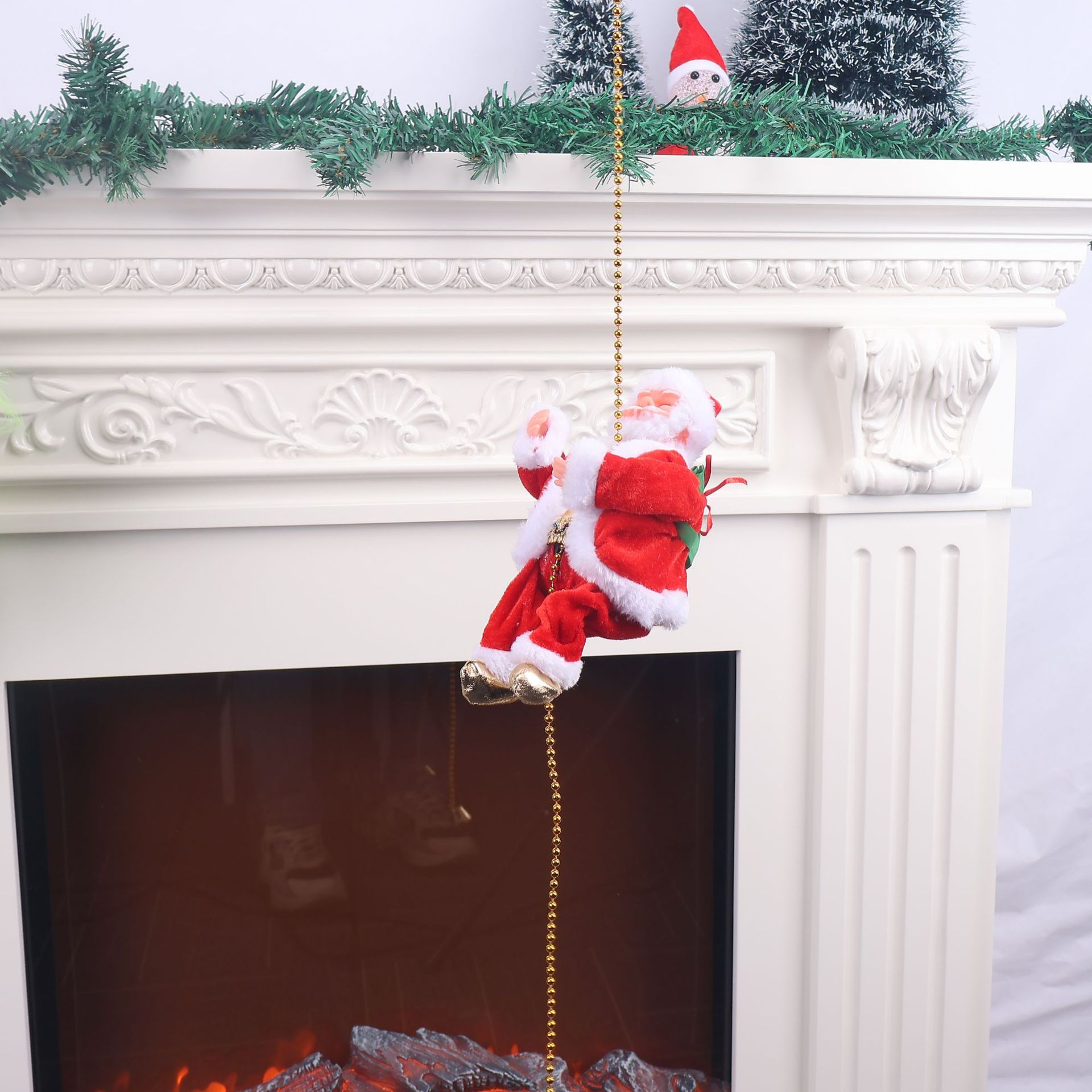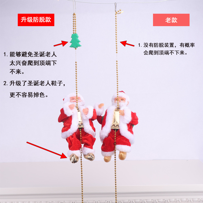 Regalo de Navidad, música de cuentas de escalada eléctrica, actualización de juguetes de muñeca de Santa Claus, cuentas de escalada eléctricas anti-caída, Santa Claus