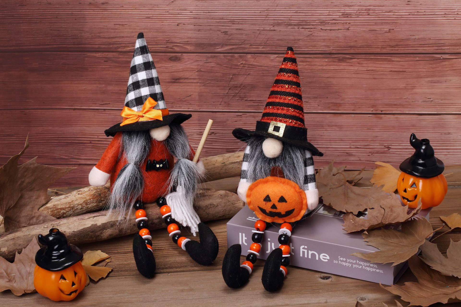 2023 transfronterizo nuevo Halloween pierna larga muñeca sin rostro enano de madera del grano pierna de calabaza escoba piso esencia muñeca Decoración