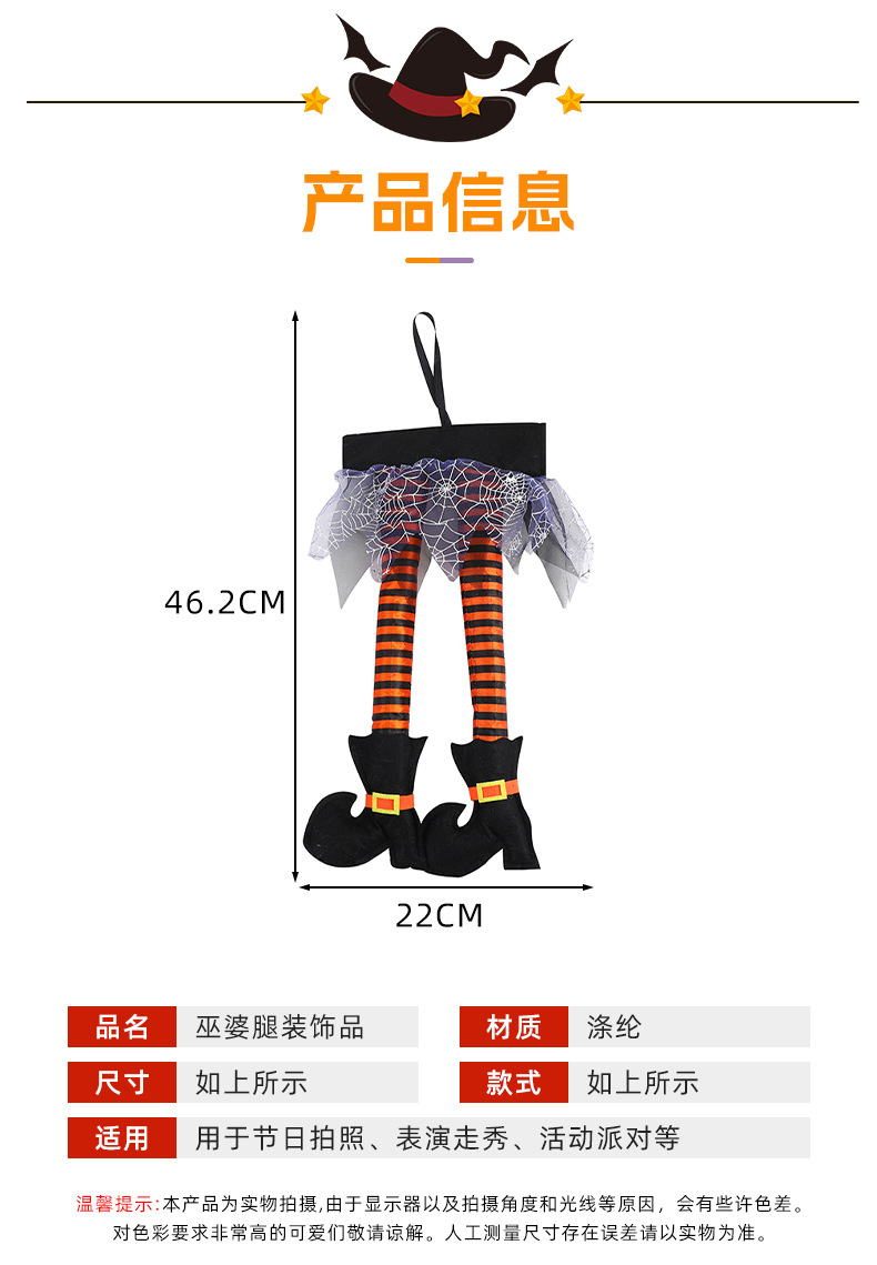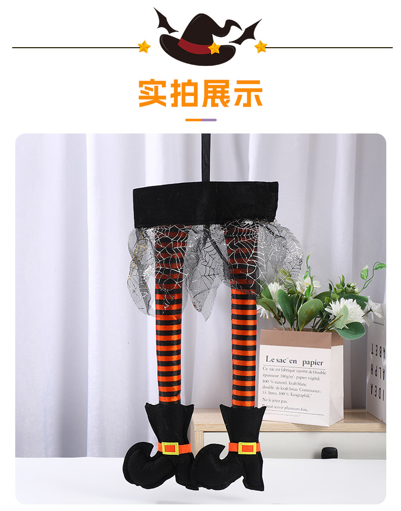 Halloween tela de araña falda bruja pierna dibujos animados decoración bruja pie Halloween colgante decoración de fiesta props en stock