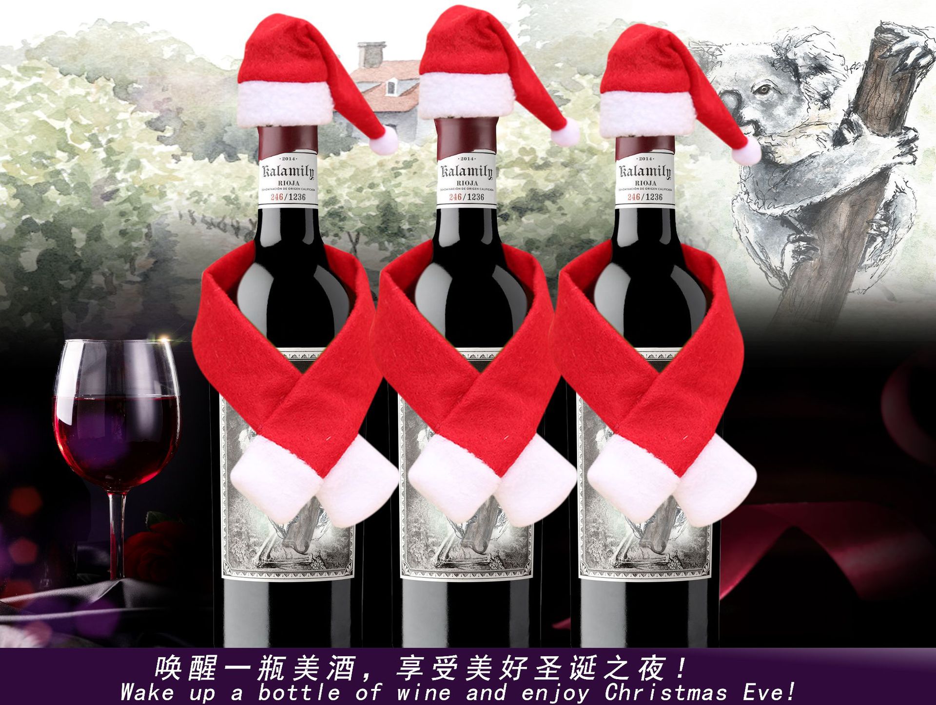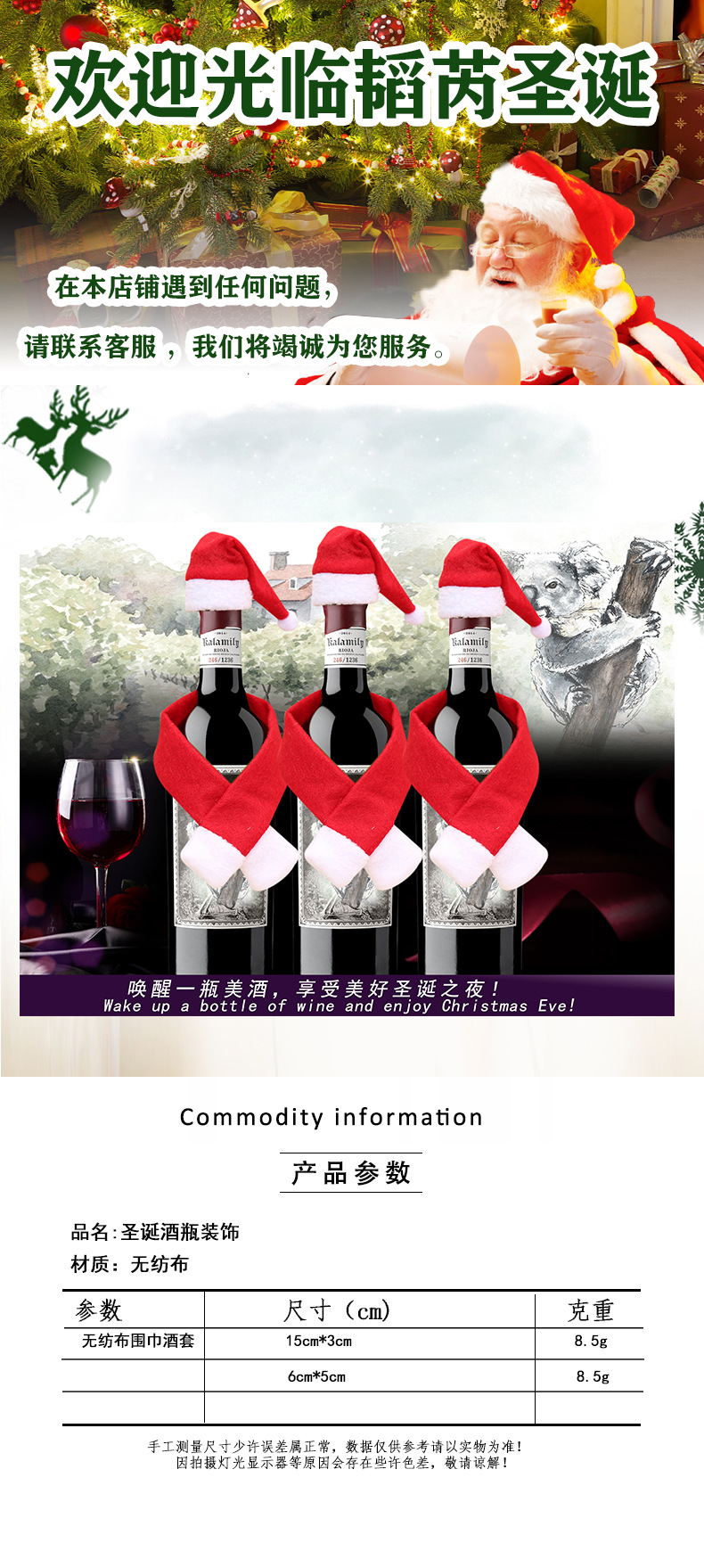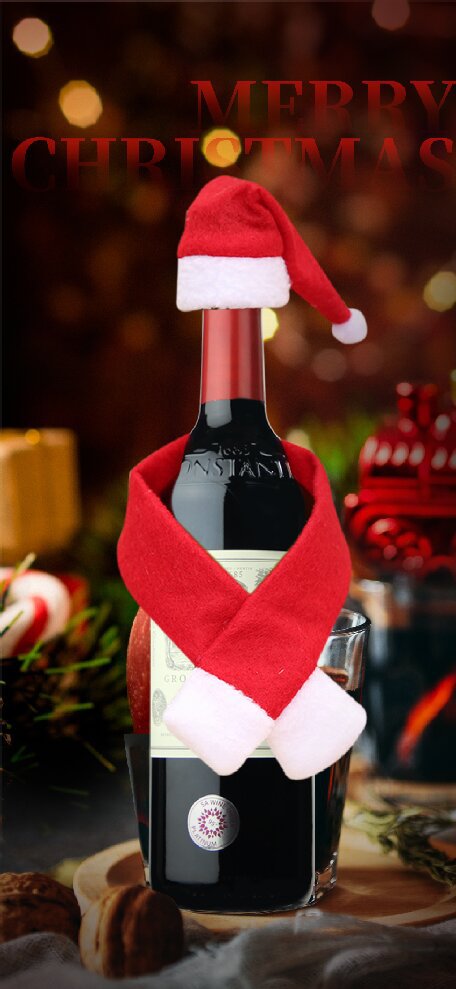 Decoración de Navidad creativa para el hogar bufandas no tejidas + sombreros decoración de botellas de vino de Navidad decoración de botellas de vino de Navidad