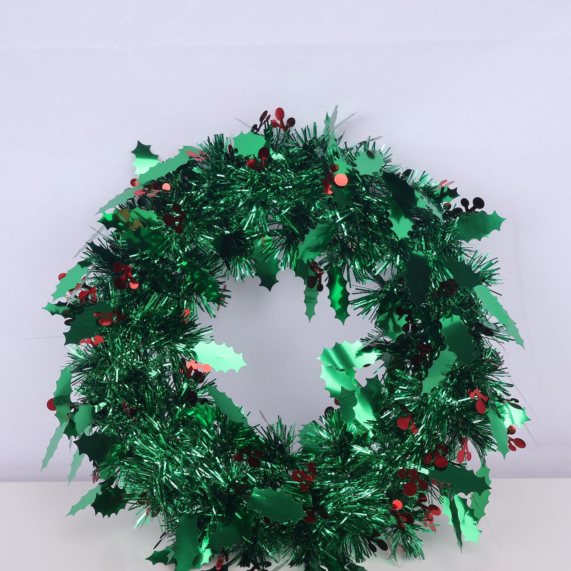 Torre de Navidad Decoración de árbol de Navidad Fruta roja Hoja verde Corona de Navidad Corona de borde blanco Escena de Navidad Decoración de tela