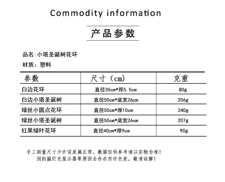 | Colores | Guirnalda de borde blanco,Árbol de Navidad de torre de borde blanco,Guirnalda de lunares de seda verde,Árbol de Navidad Torre de seda verde,Guirnalda de hoja verde de fruta roja |