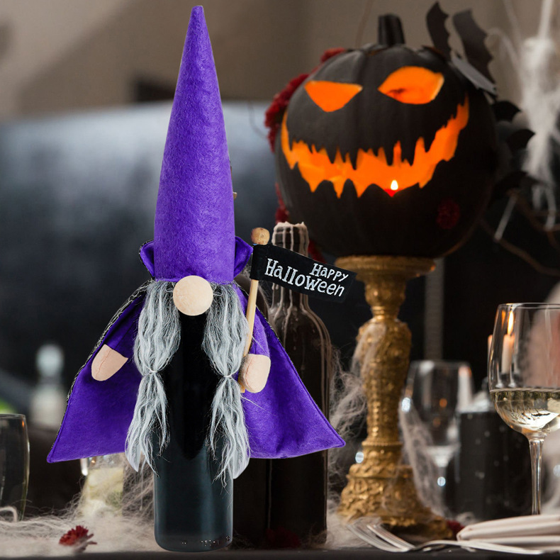 Transfronterizo de Halloween botella de vino cubierta decoración de capa de bruja negra sombrero cubierta de botella de vino vampiro cubierta de botella de vino decoración cubierta de botella