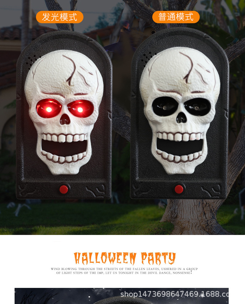 Lámpara de calabaza de Halloween, botón de calavera grande, sonido, casa embrujada, habitación secreta, decoración de bar, accesorios de timbre complicados que brillan